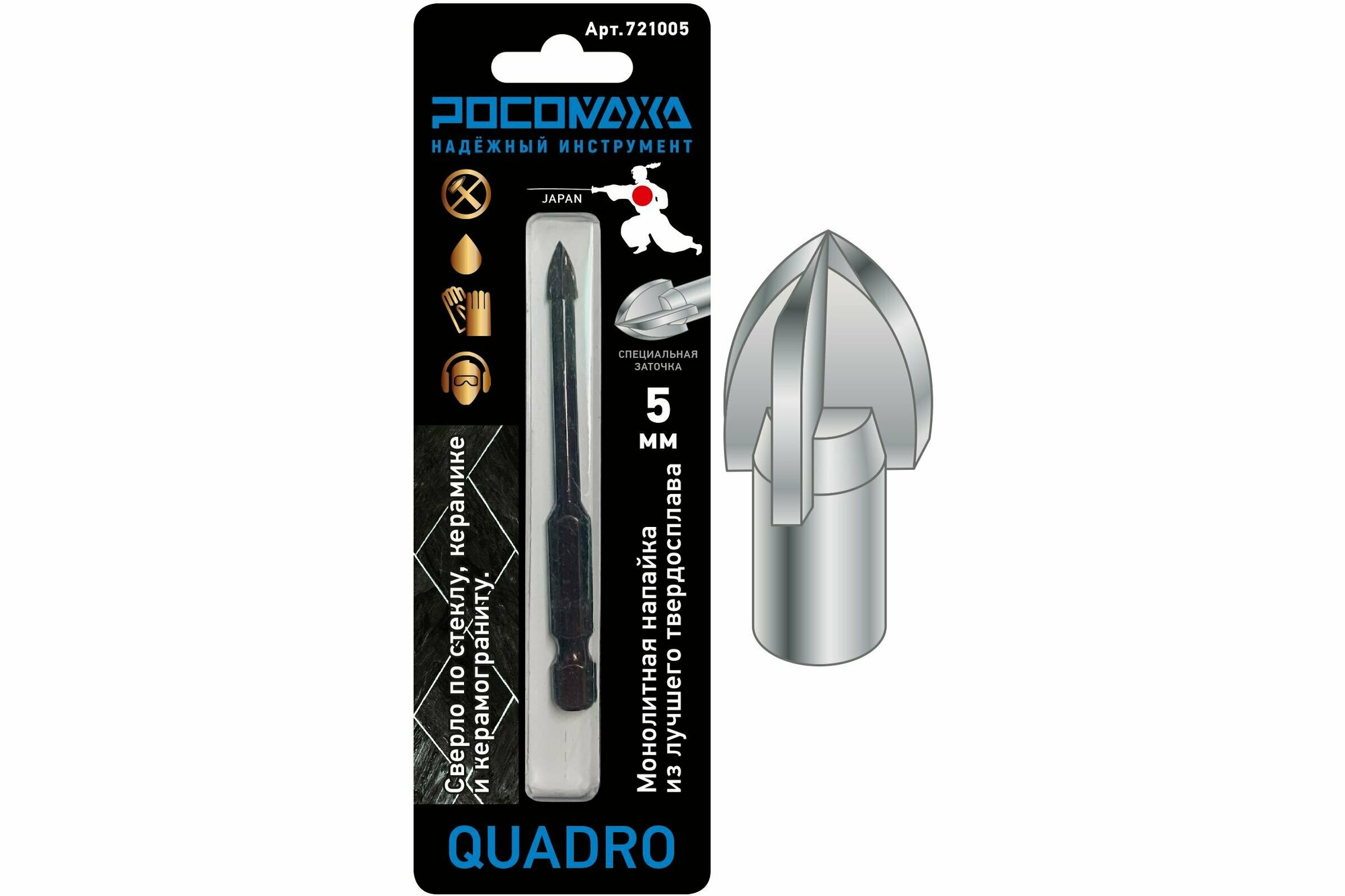Росомаха Сверло по стеклу, керамике и керамограниту 4 режущие грани 5 мм 721005