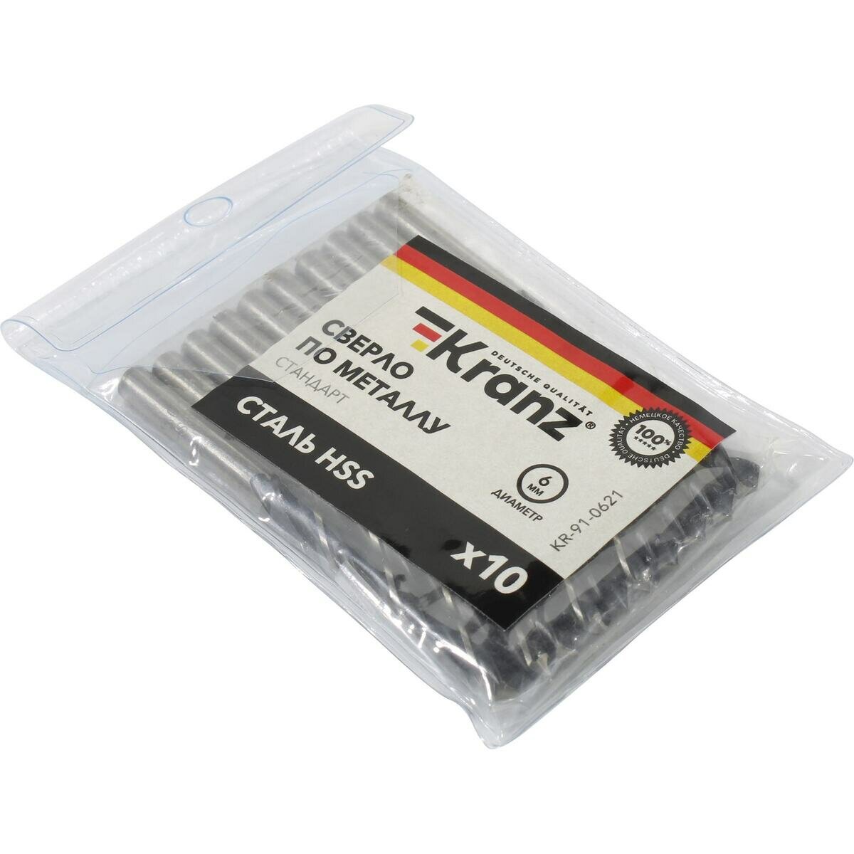 Сверло по металлу 6.0мм HSS DIN 338 (уп.10шт) Kranz KR-91-0621