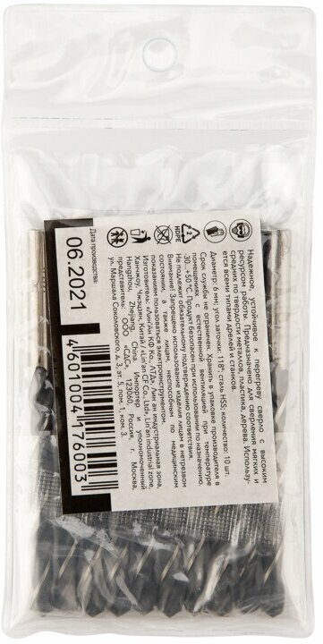 Сверло KRANZ по металлу 6,0 мм повышенной прочности с углом заточки 118 градусов HSS, 10 шт. в упаковке, DIN 338