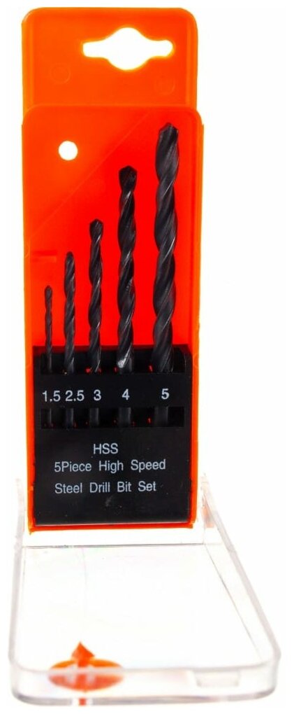 Набор сверл по металлу, 1.5-2.5-3-4-5 мм, HSS, 5 шт, пластиковый бокс, цилиндрический хвостовик Sparta, 723155