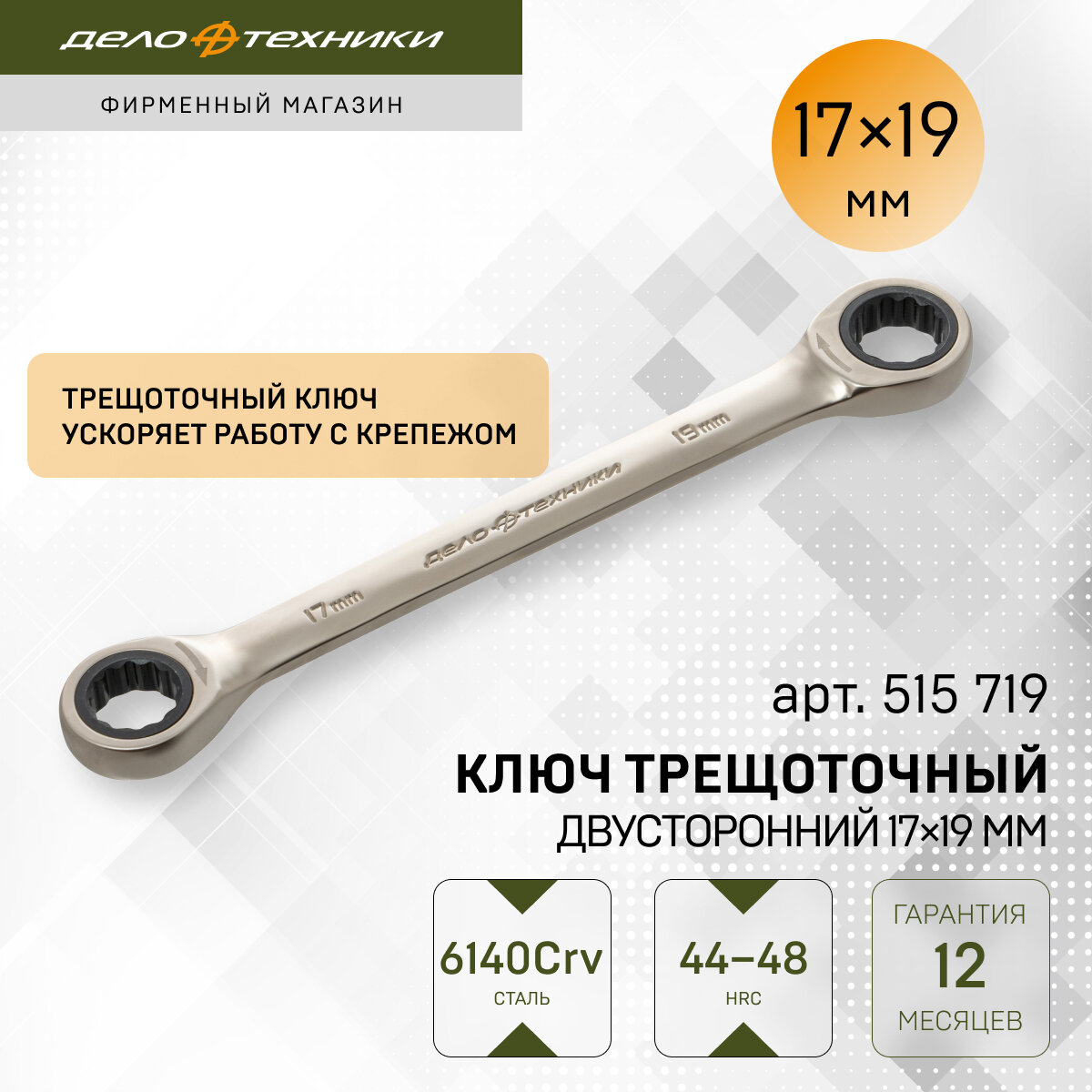 Ключ трещоточный двусторонний 17 × 19 мм, Дело Техники, 515719 интересное: