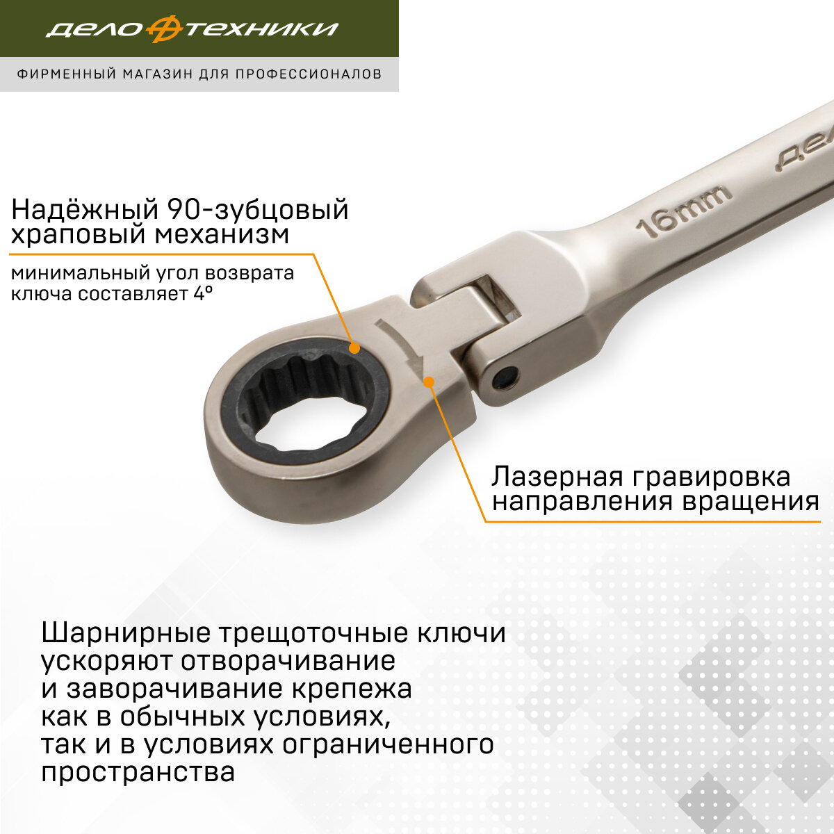 Ключ трещоточный шарнирный двусторонний 16 × 18 мм, Дело Техники, 515818 интересное: