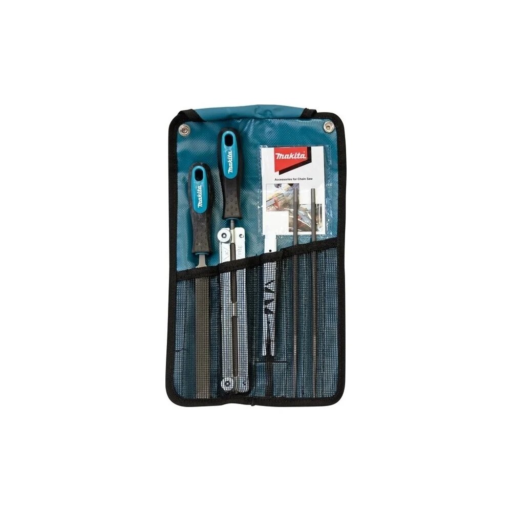 Купить Makita Набор для заточки цепи: напильник круглый 4 мм х 2шт., плоский, шаблон, рукоятки, сумка D-72154