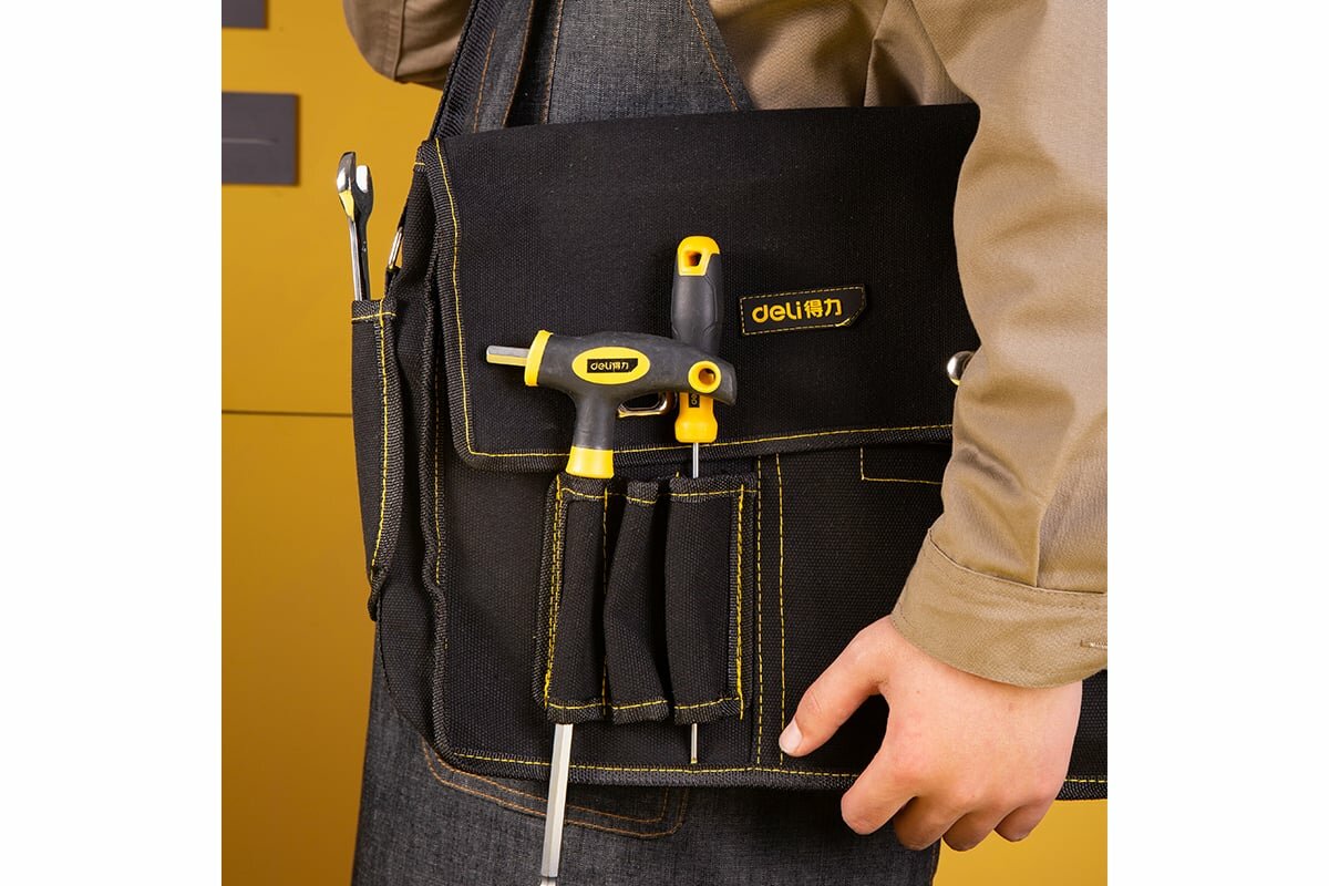 Сумка-планшет для инструментов DELI DL-P6 320x110x310мм (7 карманов, плечевой ремень, ткань канвас) 130330