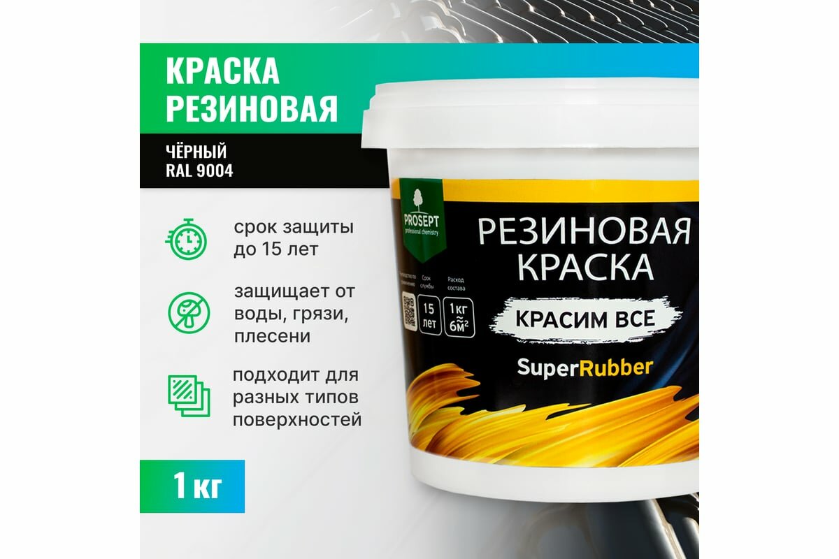 Краска резиновая Prosept SuperRubber (1кг) черный RAL9004