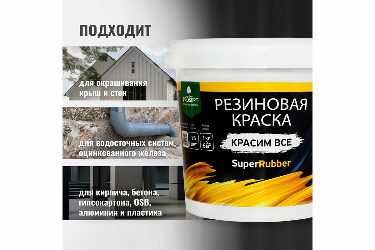 Краска резиновая Prosept SuperRubber (1кг) белый RAL9003