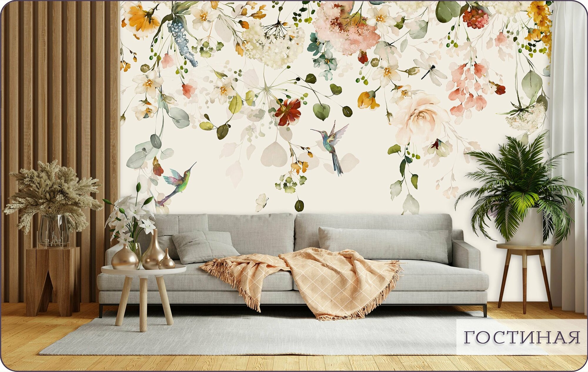 СохранитьФотообои на стену флизелиновые 3d Растения Цветы Птицы 300х270 см Bartonwall F070 интересное: