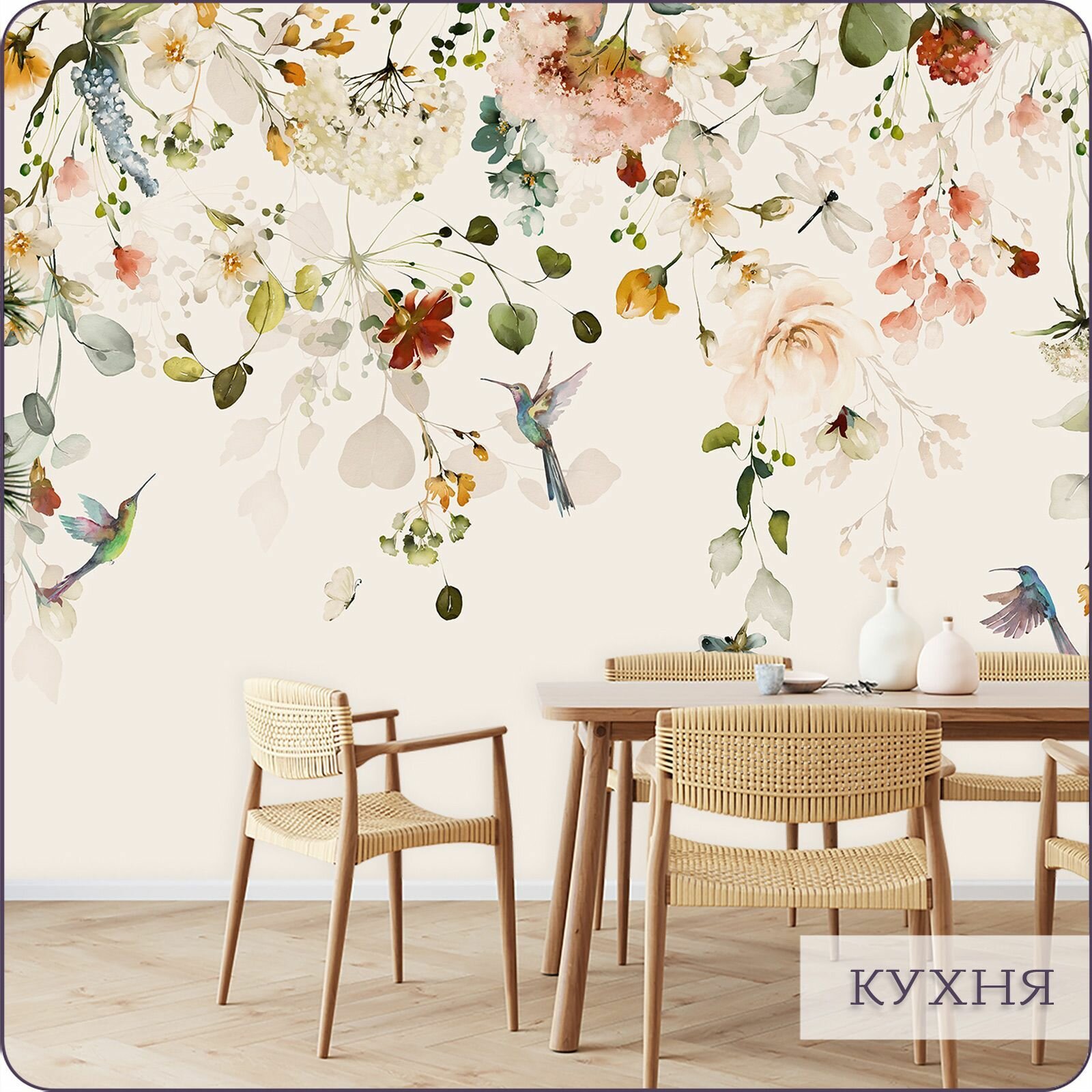 Фотообои на стену флизелиновые 3d Цветы Бабочки Птицы 300х270 см Bartonwall N156