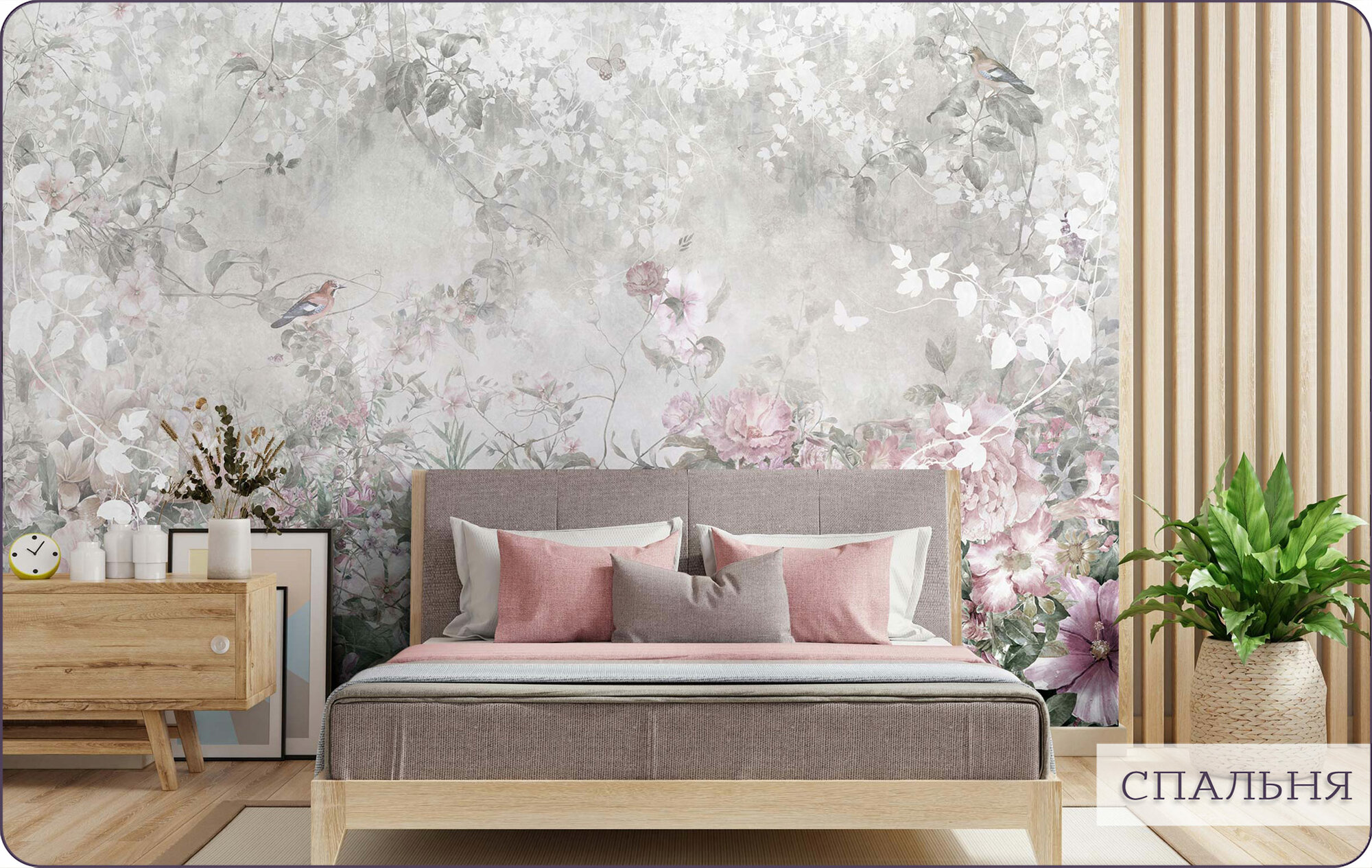 Фотообои на стену флизелиновые 3d Растения Цветы Птицы 200х270 см Bartonwall F070