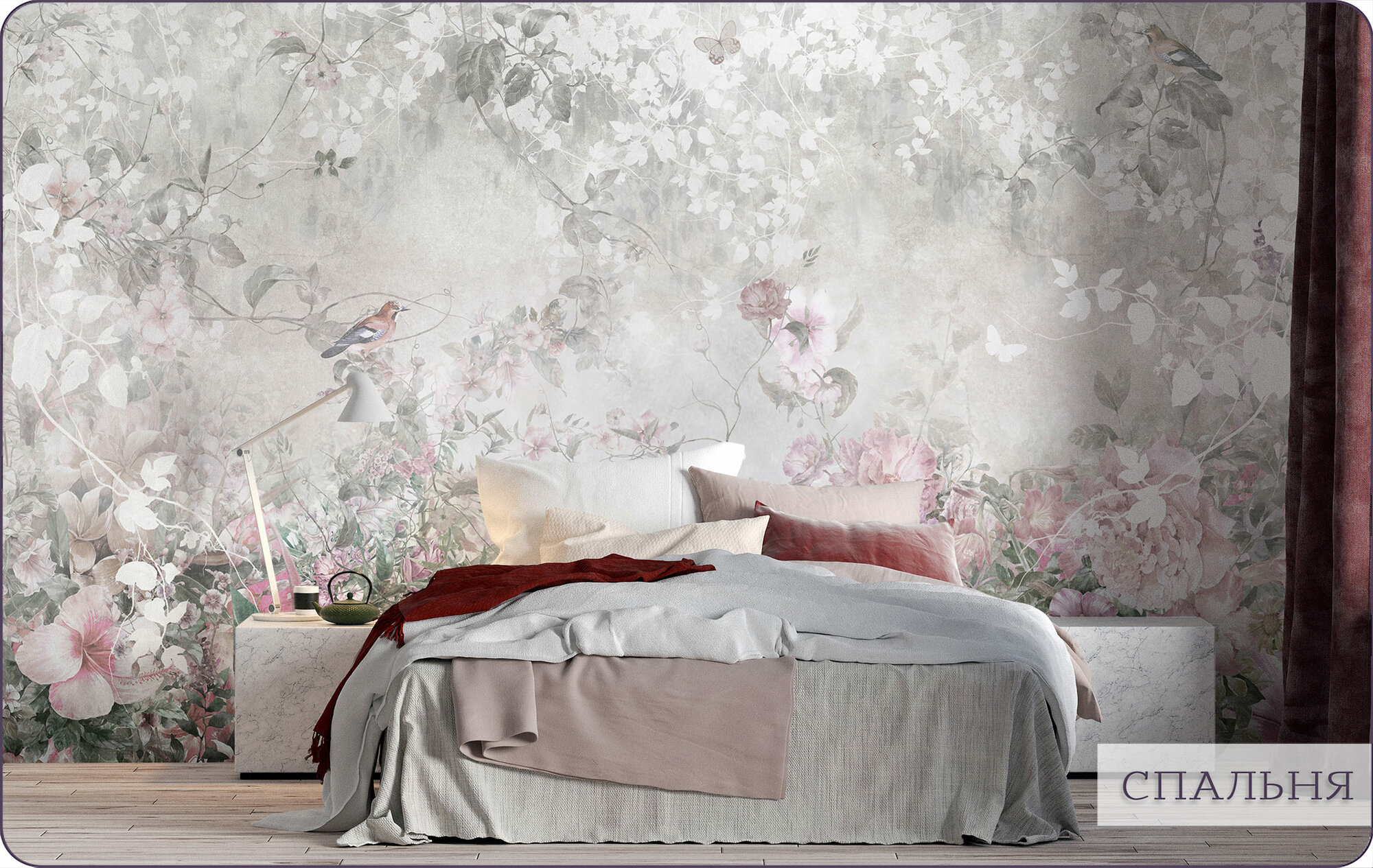 СохранитьФотообои на стену флизелиновые 3d Цветы Бабочки Птицы 300х270 см Bartonwall N156 интересное: