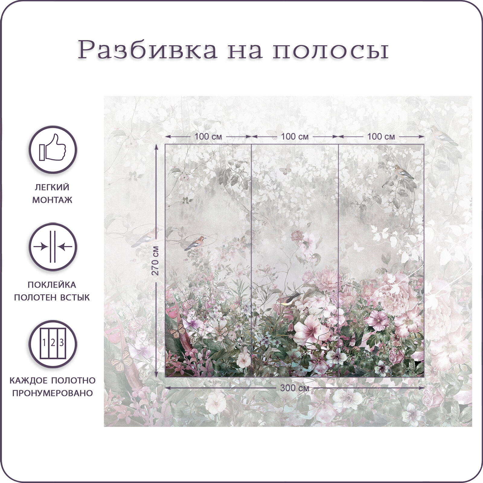 Купить Фотообои на стену флизелиновые 3d Цветы Бабочки Птицы 300х270 см Bartonwall N156
