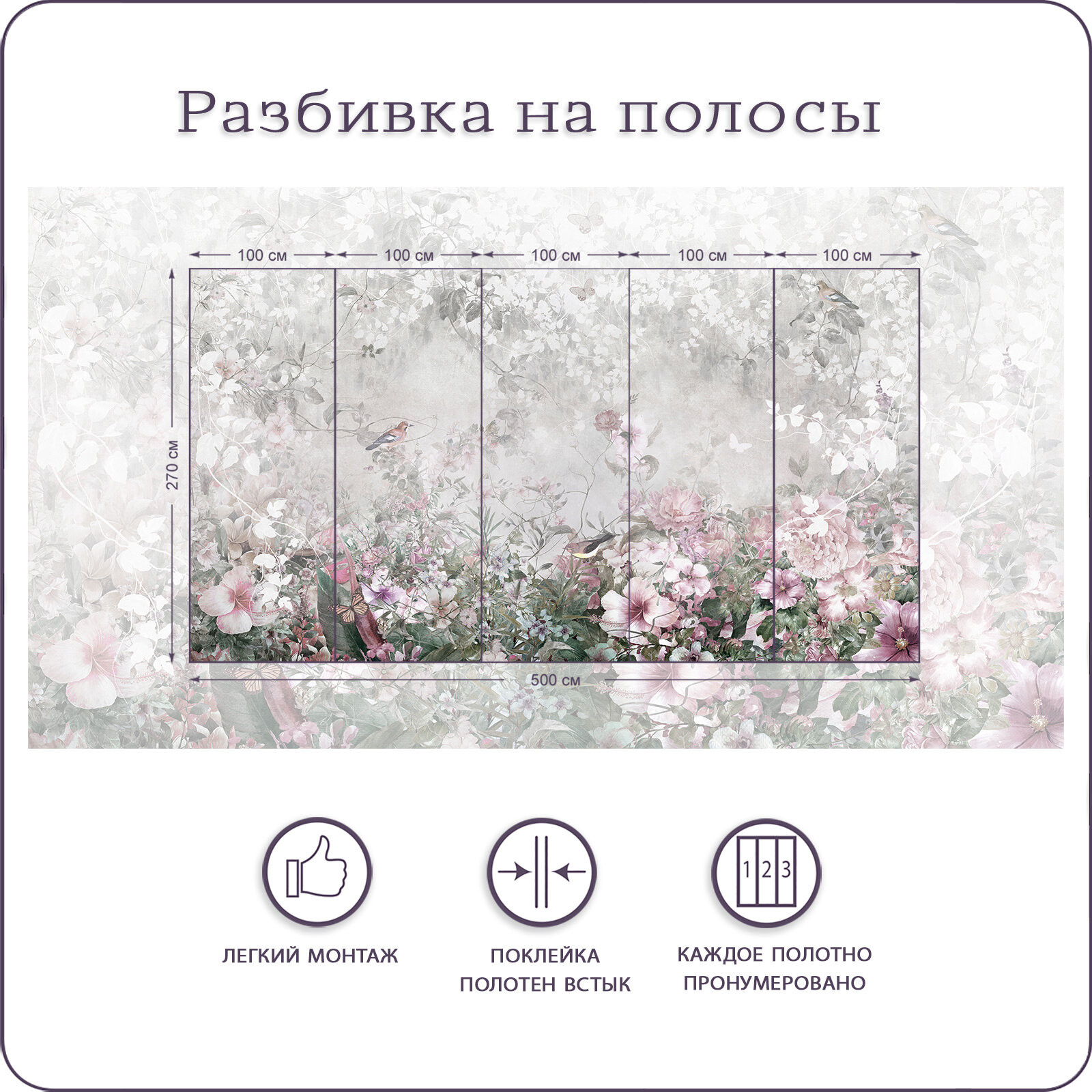 Купить Фотообои на стену флизелиновые 3d Цветы Бабочки Птицы 500х270 см Bartonwall N156
