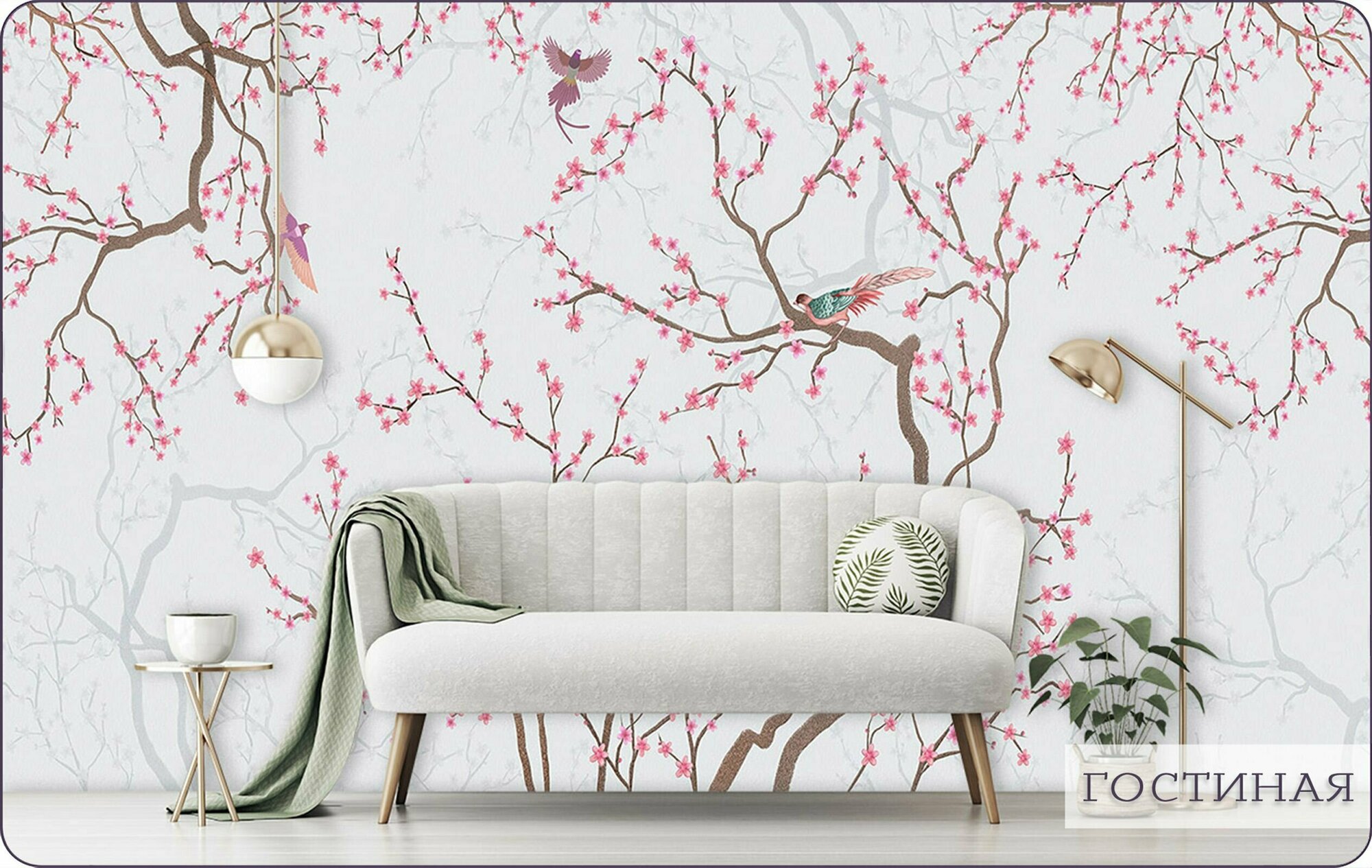 СохранитьФотообои на стену флизелиновые 3d Цветы Птицы Сакура 400х270 см Bartonwall F058 интересное: