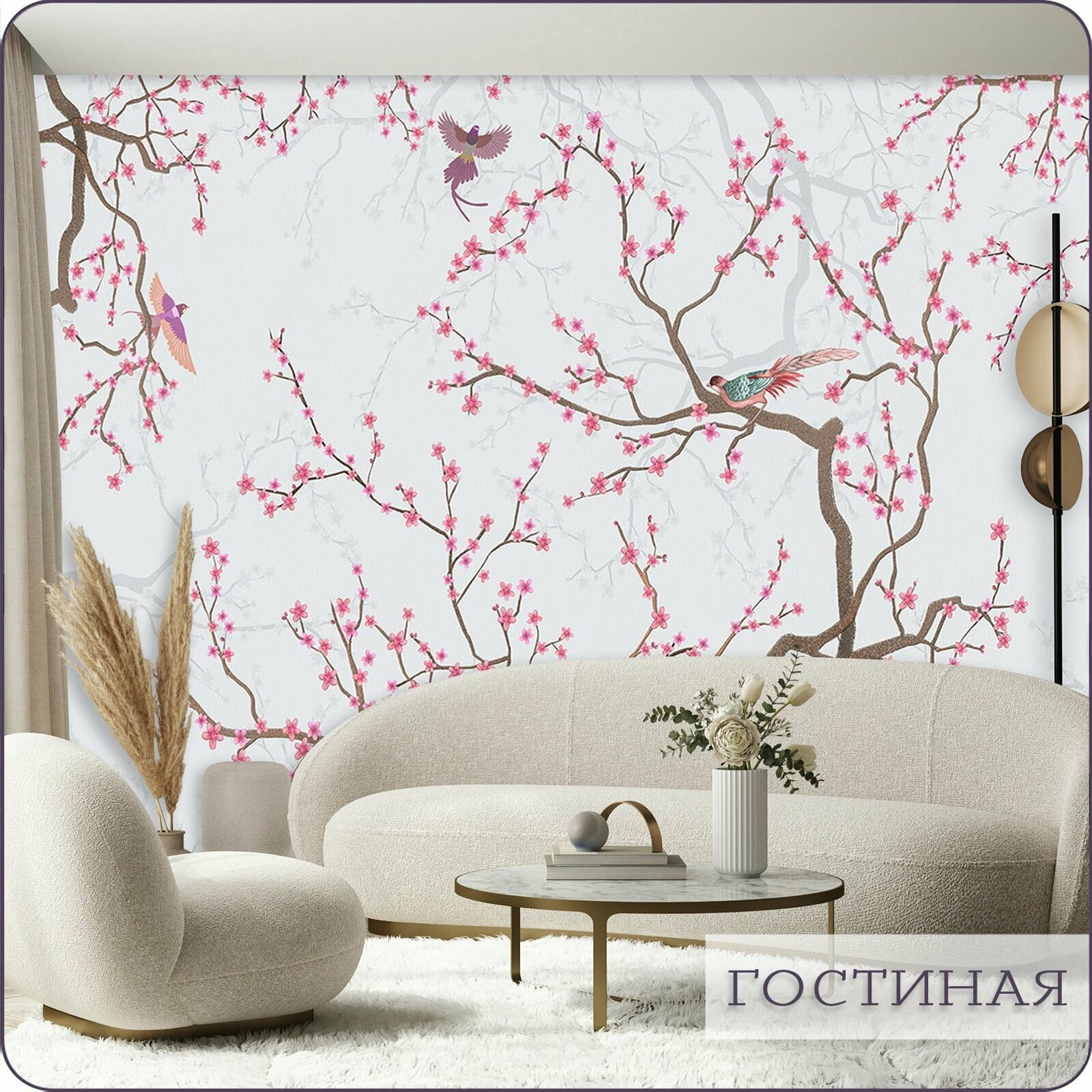 Купить Фотообои на стену флизелиновые 3d Цветы Птицы Сакура 400х270 см Bartonwall F058