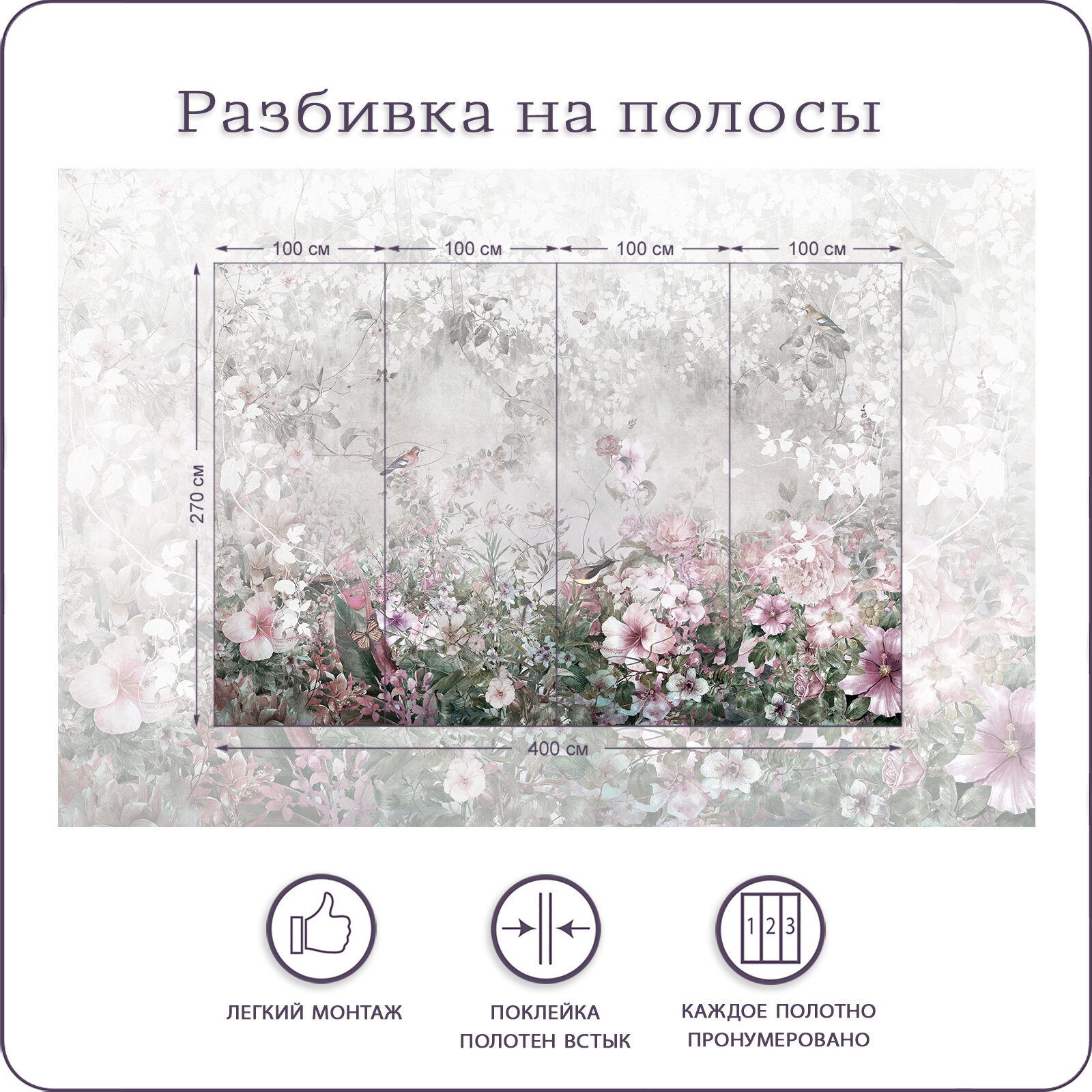 Купить Фотообои на стену флизелиновые 3d Цветы Бабочки Птицы 400х270 см Bartonwall N156