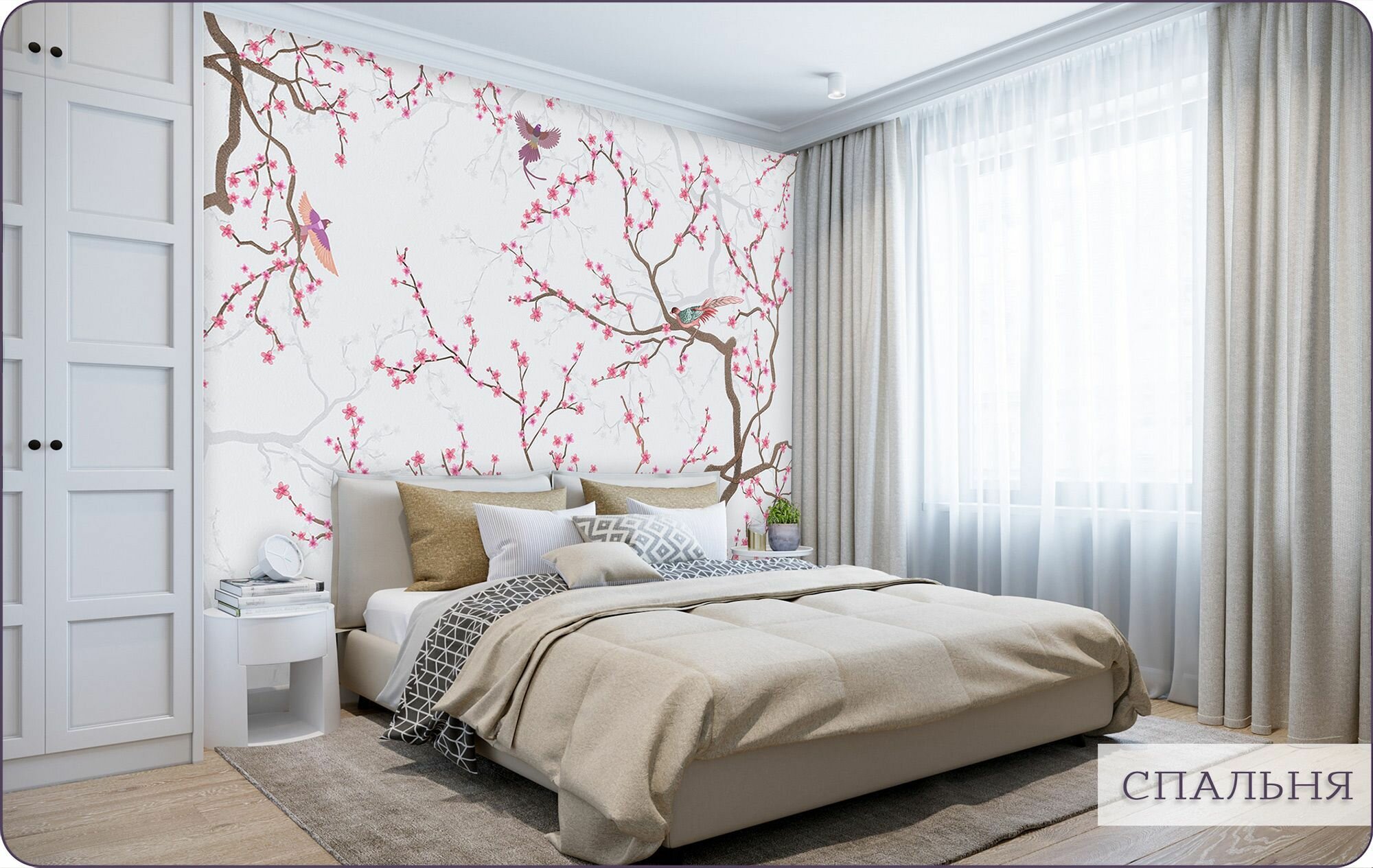 СохранитьФотообои на стену флизелиновые 3d Цветы Птицы Сакура 600х270 см Bartonwall F058 интересное: