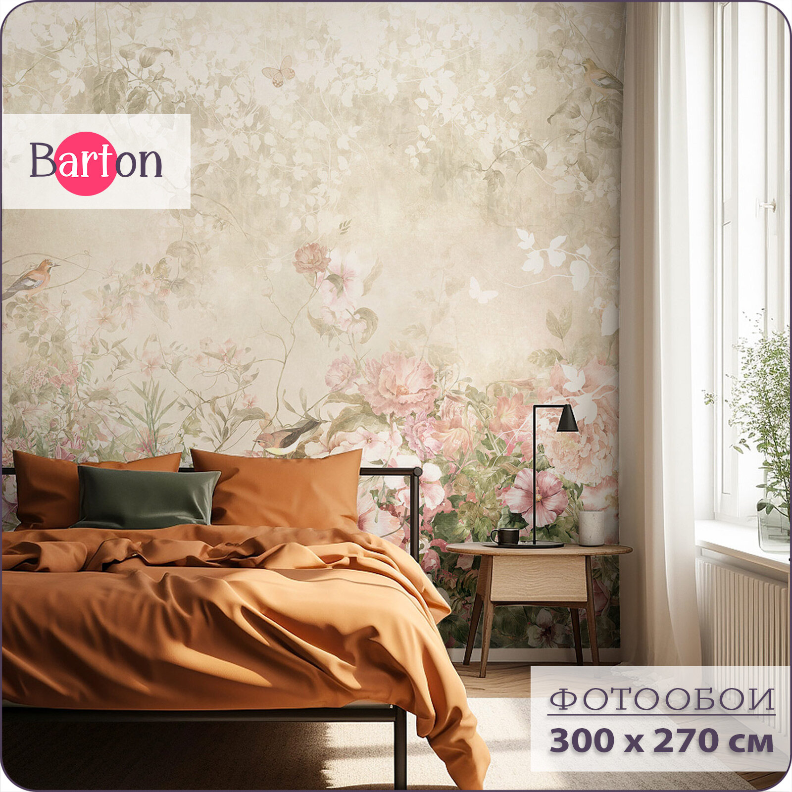 Купить Фотообои на стену флизелиновые 3d Цветы Бабочки Птицы 300х270 см Bartonwall N156-B