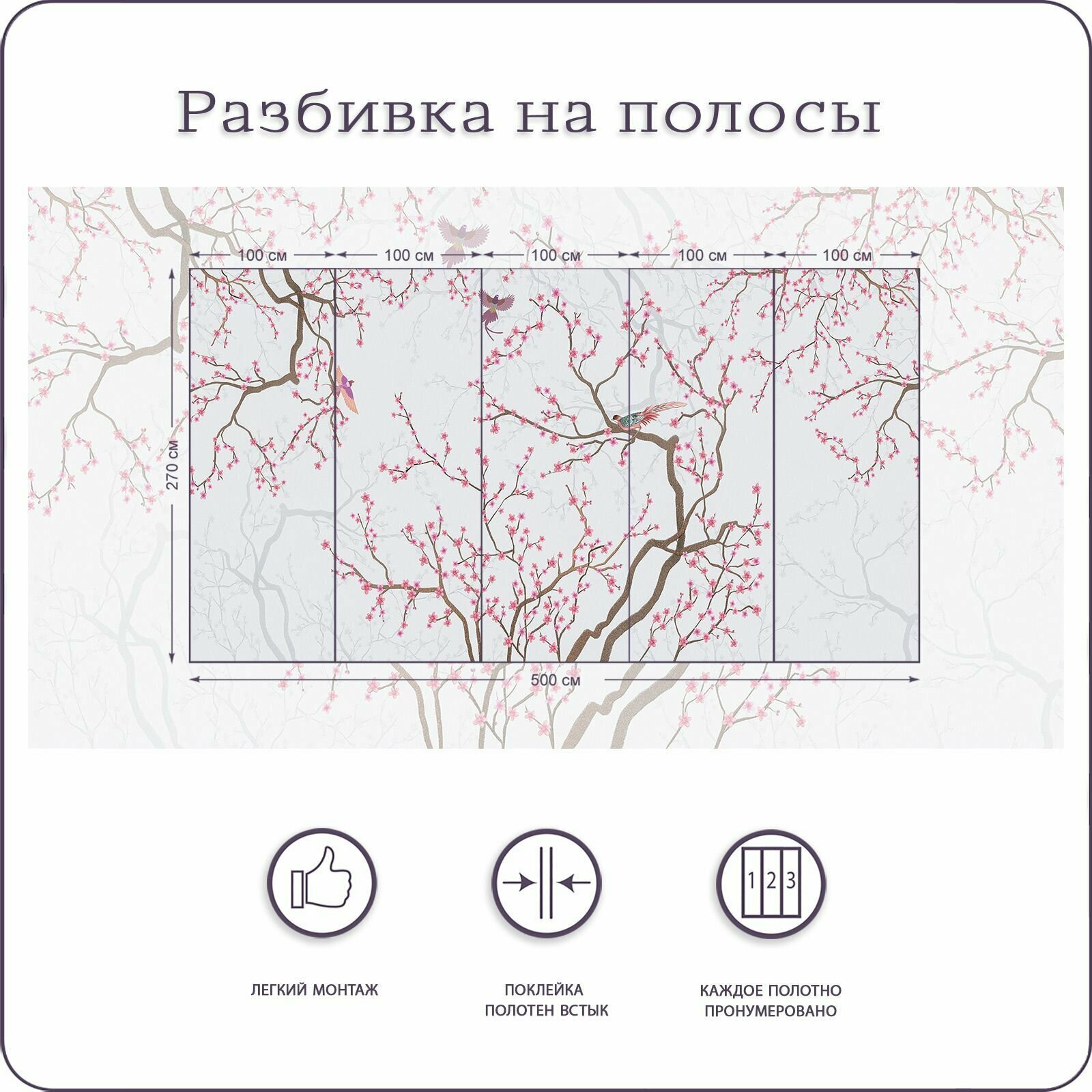 Купить Фотообои на стену флизелиновые 3d Цветы Птицы Сакура 500х270 см Bartonwall F058