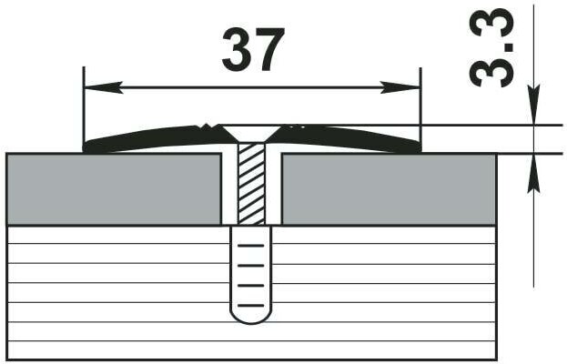 Порог напольный стыкоперекрывающий одноуровневый 37х3 мм, длина 0,9 м, профиль-порожек алюминиевый Лука ПС 03, анод серебро 01л
