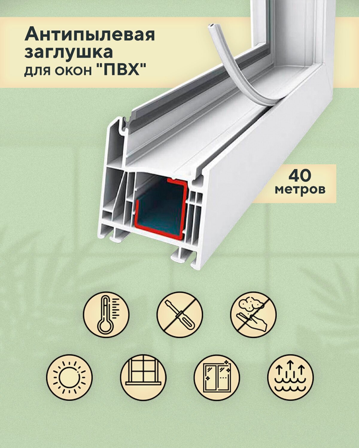 Антипылевая заглушка оконного паза - уплотнитель универсальный 40 метров для окон ПВХ, белая интересное: