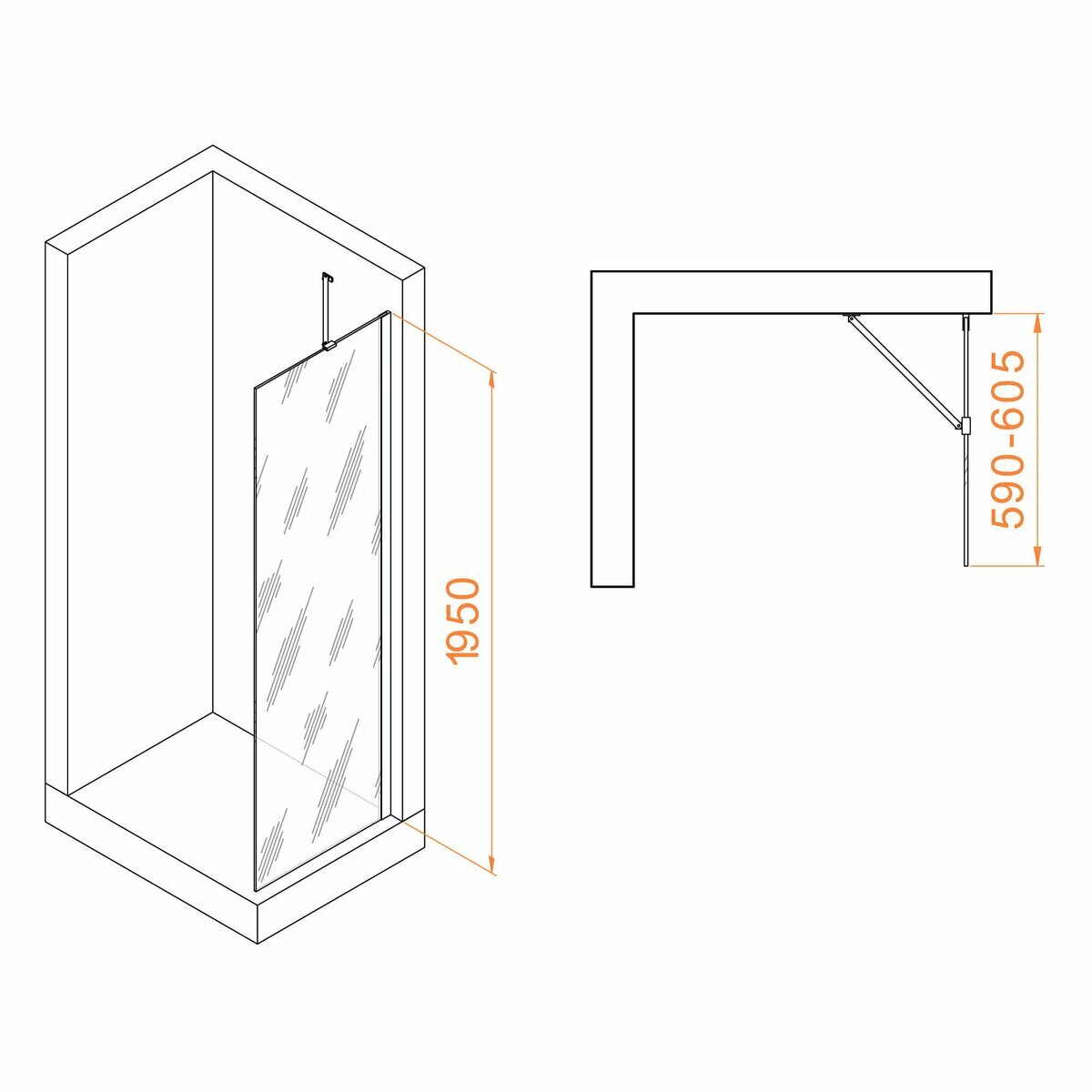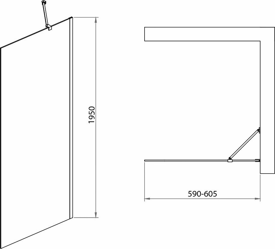 Купить Душевая перегородка RGW Walk In 60x195 WA-102B стекло прозрачное, профиль черный