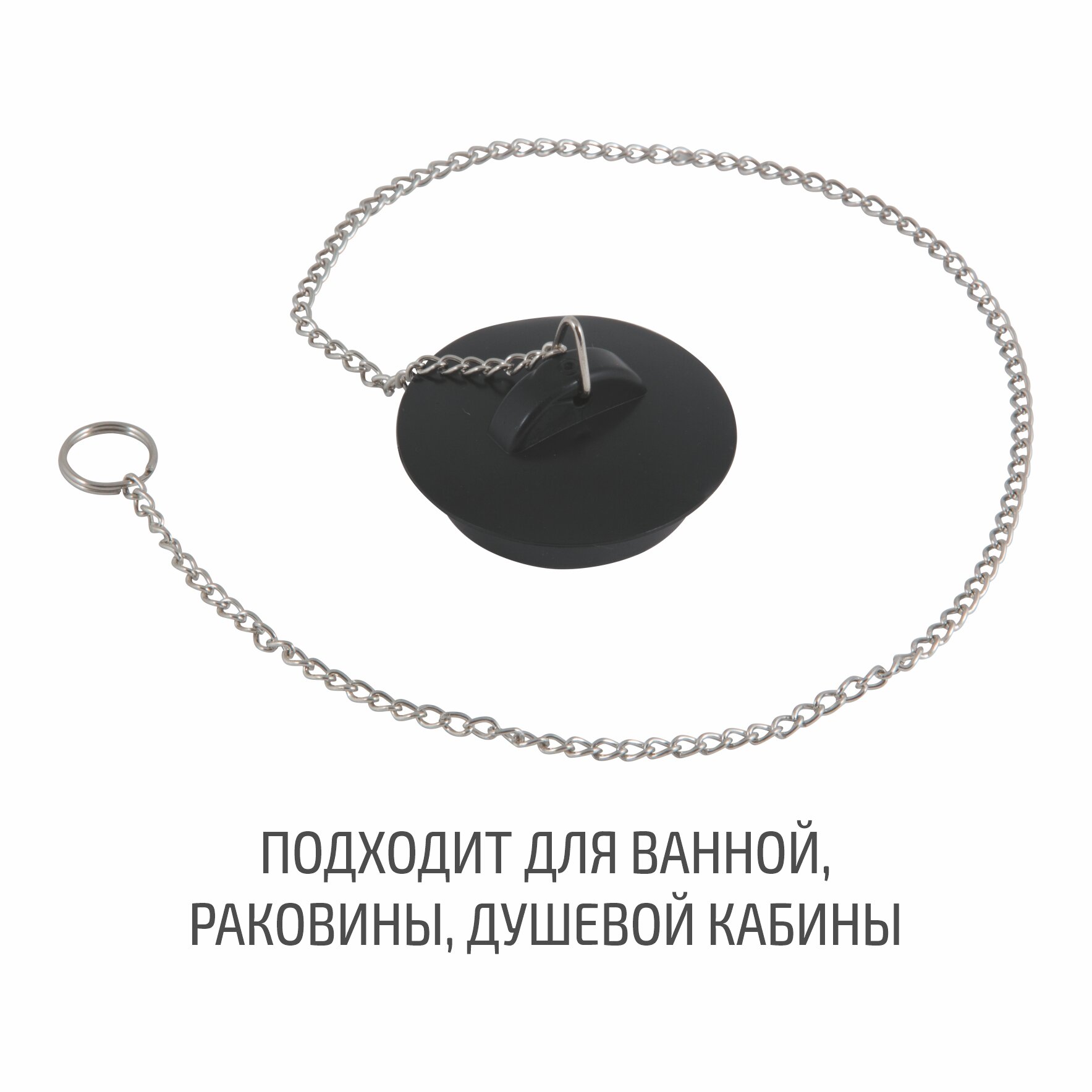 Купить Пробка для ванной и раковины резиновая с цепочкой длиной 45 см, черная