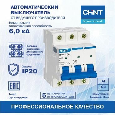 Автоматический выключатель CHINT NXB-63, 3P, 6A, 6кА, характеристика C 814168