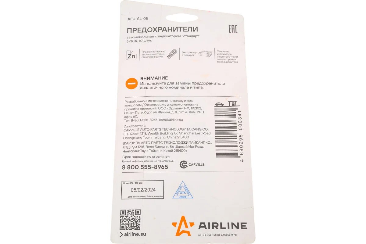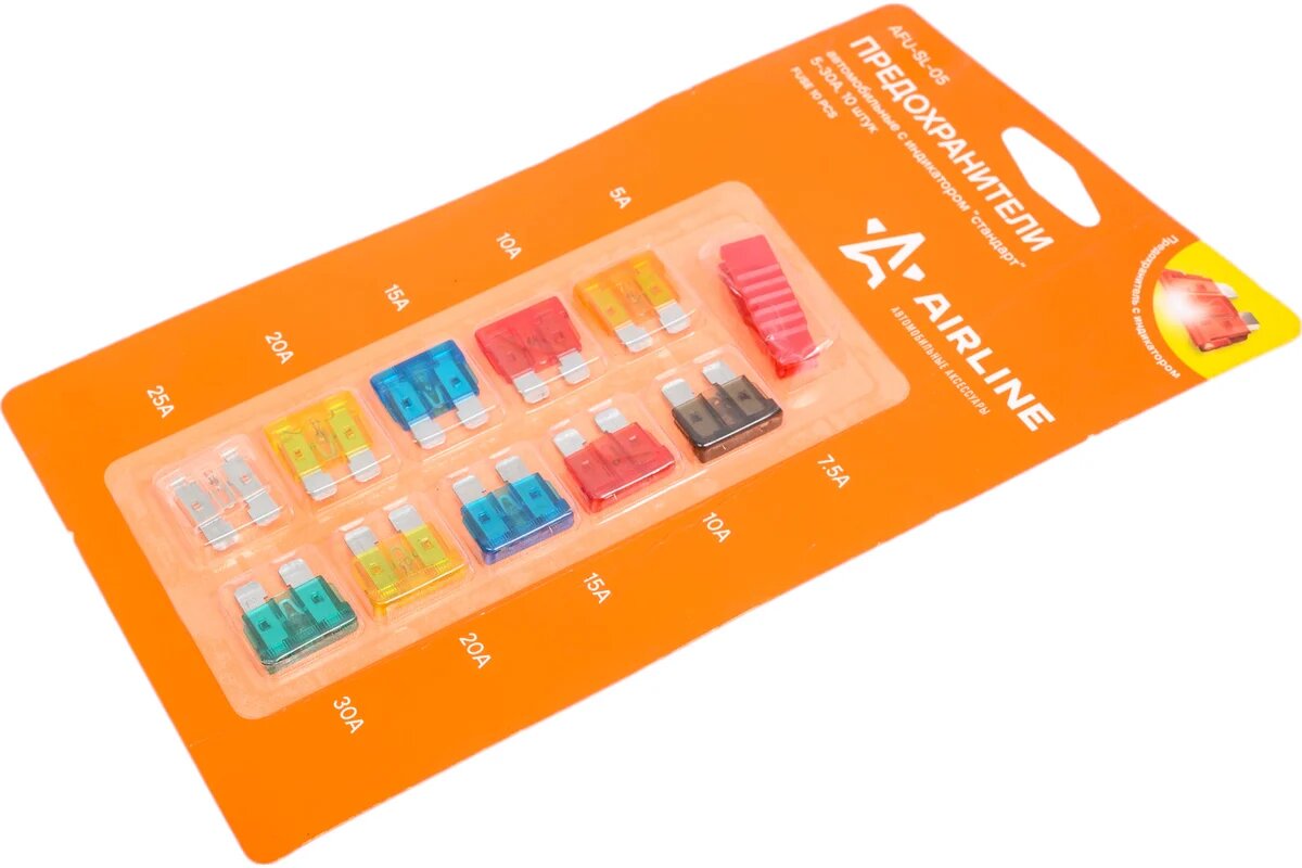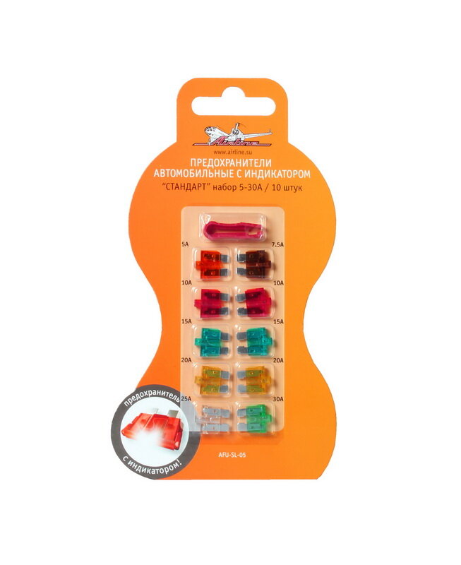 Предохранители "стандарт" с индикатором в блистере с экстрактором AIRLINE AFUSL05 (10 шт. 5-30А) (AFU-SL-05) - 1уп. интересное: