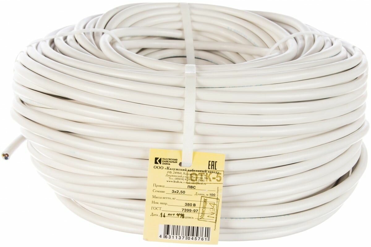 СохранитьПровод ПВС 3*2,5 100 метров белый ГОСТ Калужский кабельный завод интересное: