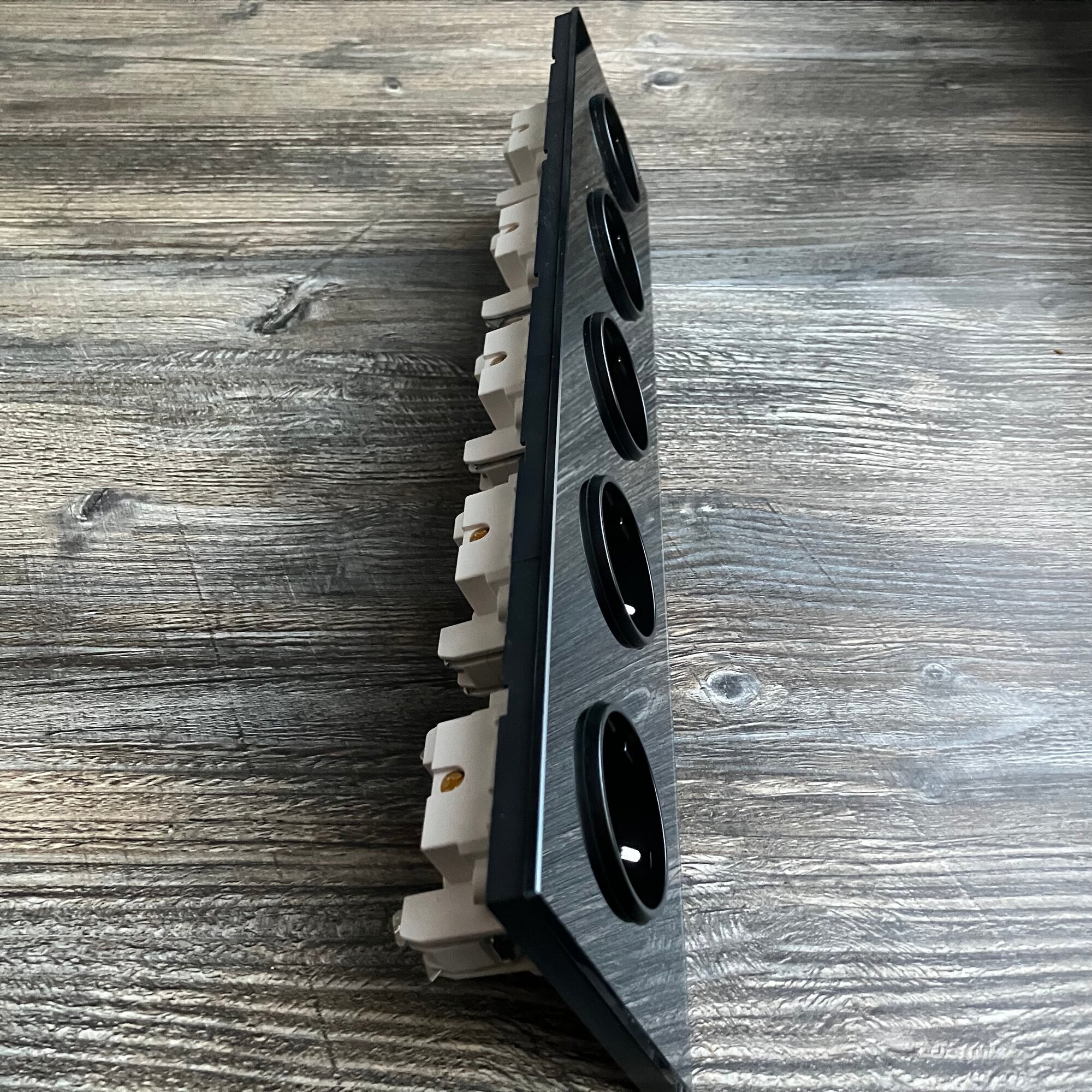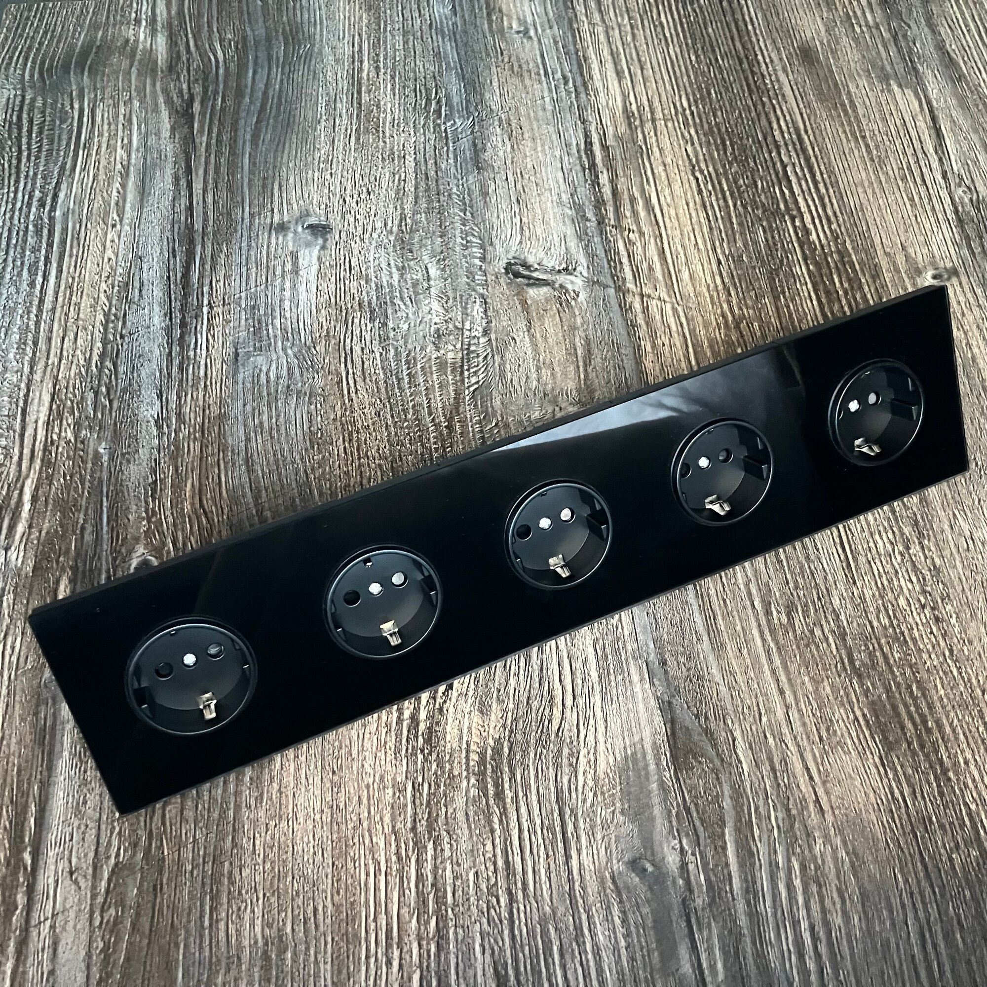 Розетка электрическая 5 постов 16А, рамка 366*82*8mm. рамка стекло сплошное, цвет чёрный. F8