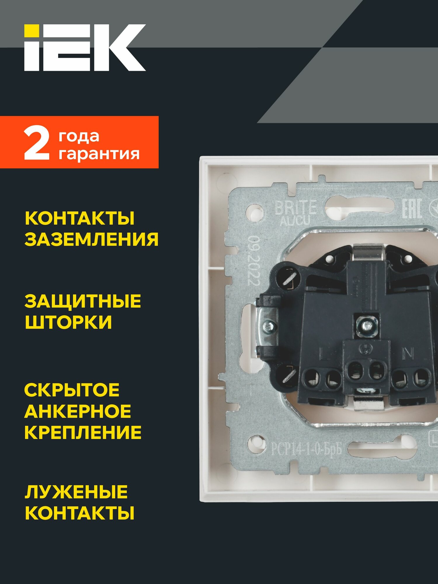 СохранитьРозетка с з/к (2P+E) шторки 16А в сборе бел. РСР14-1-0-БрБ скрыт. уст. BRITE IEK интересное: