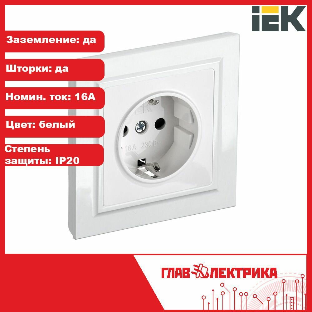 Розетка BRITE РСР14-1-0-БрБ 16А в сборе с заземл. защ. шторки бел. | код BR-R14-16-K01-F | IEK (8шт. в упак.)