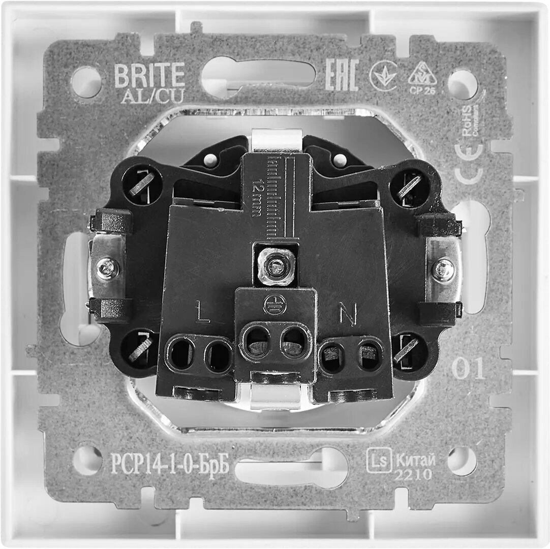Розетка IEK Brite РСР14-1-0-БрБ 16А в сборе с заземл. защ. шторки бел., Br-r14-16-k01-f