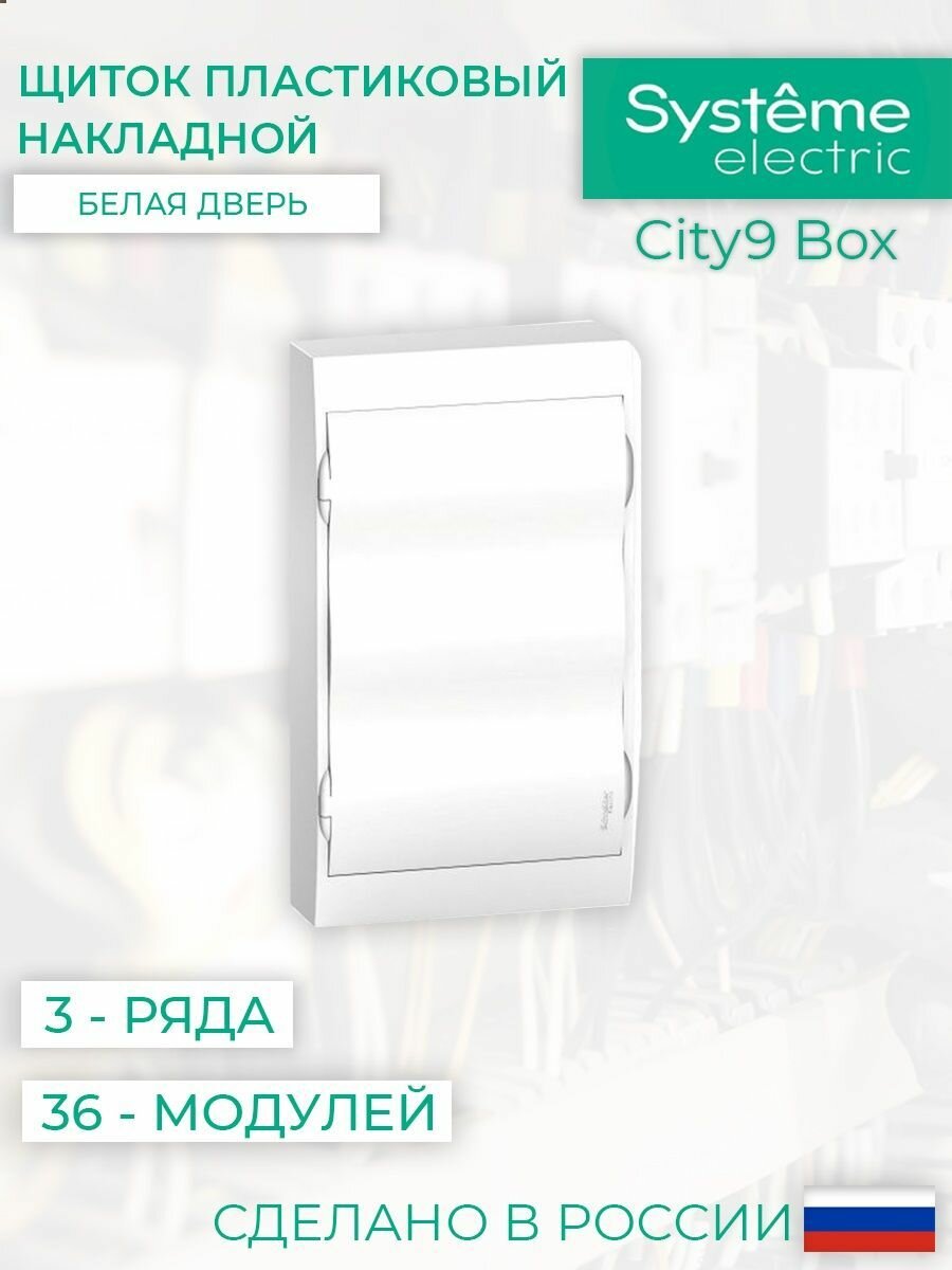 SYSTEME ELECTRIC EZ9E312P2SRU Бокс навесной ОП City9 Box 3 ряда 36мод IP40 IK07 80А 2 клеммы с бел. дверцей SE EZ9E312P2SRU