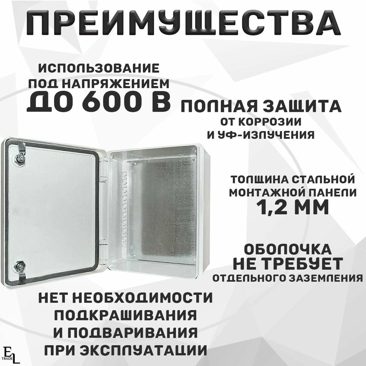 | Дополнительные функции | место под электрический счётчик, установка на открытом воздухе, замок с ключом |