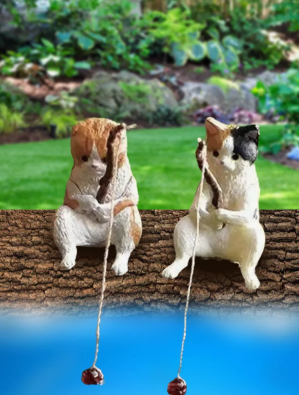 Декор для аквариума кот-рыболов рыжий с белым (2)