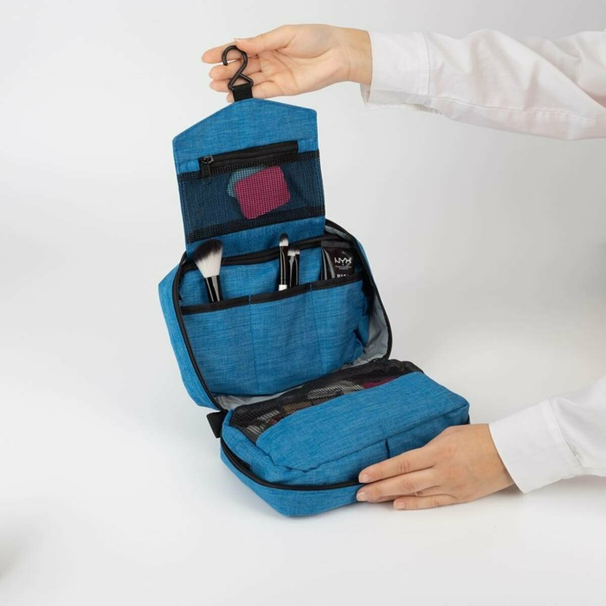 Косметичка дорожная КНР 2 отдела на молниях, с крючком, цвет голубой