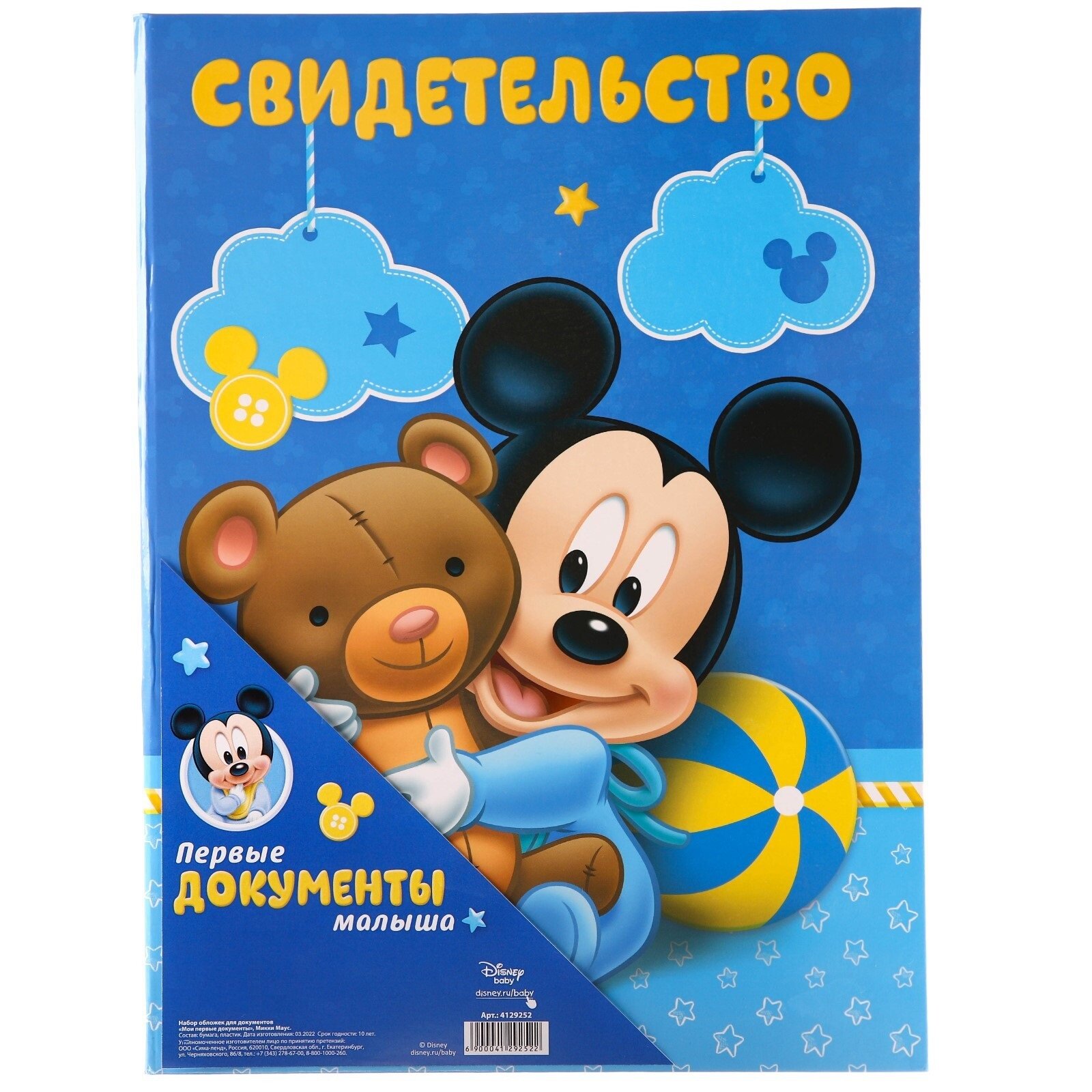 Обложка для свидетельства о рождении и на полис Disney Микки Маус "Мои первые документы", формат А4, для мальчика