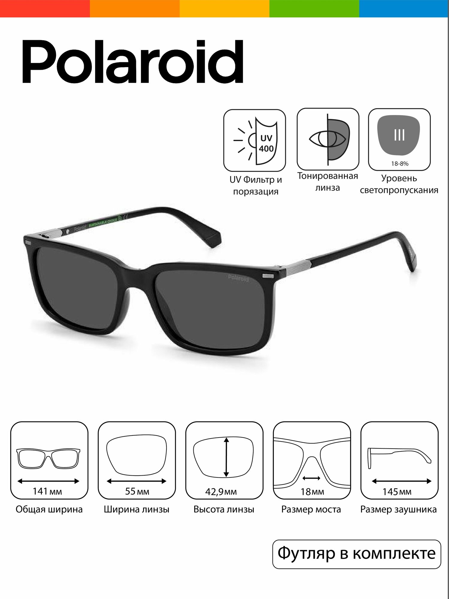 Солнцезащитные очки POLAROID 2117/S BLACK (20430380755M9) интересное: