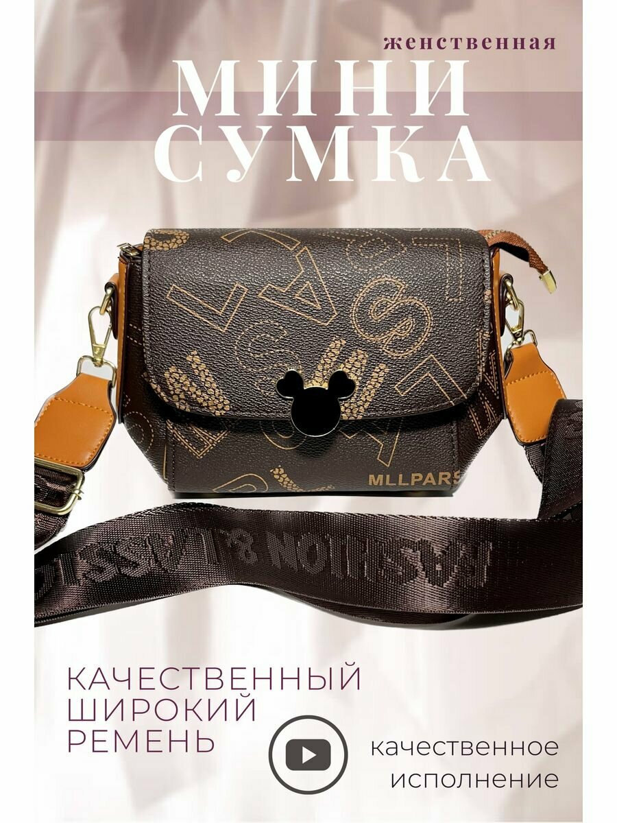 Сумка женская через плечо мини WoW Zina мини клатч коричневая интересное: