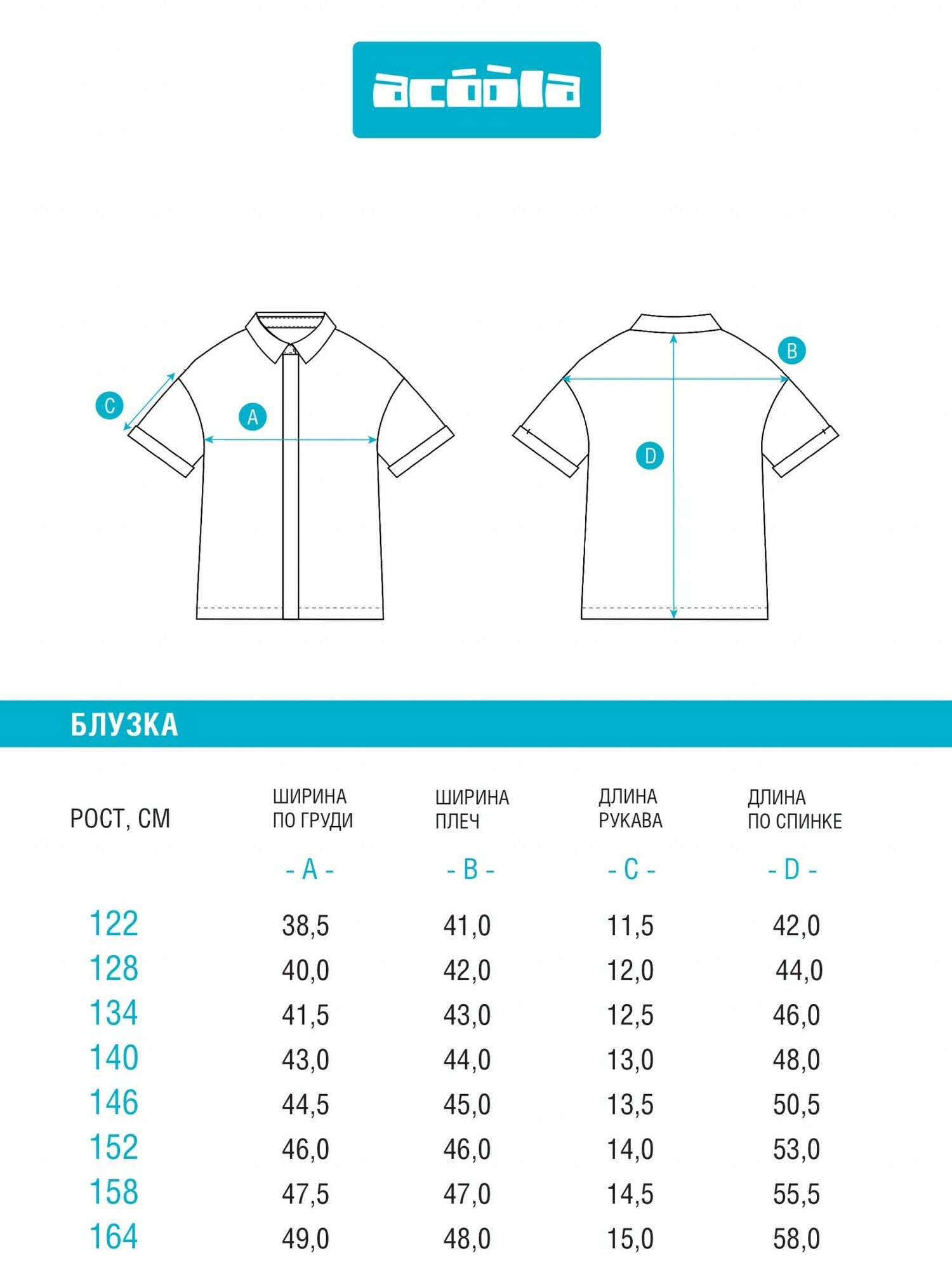 Блузка ACOOLA Rialto голубой для девочек 158 размер