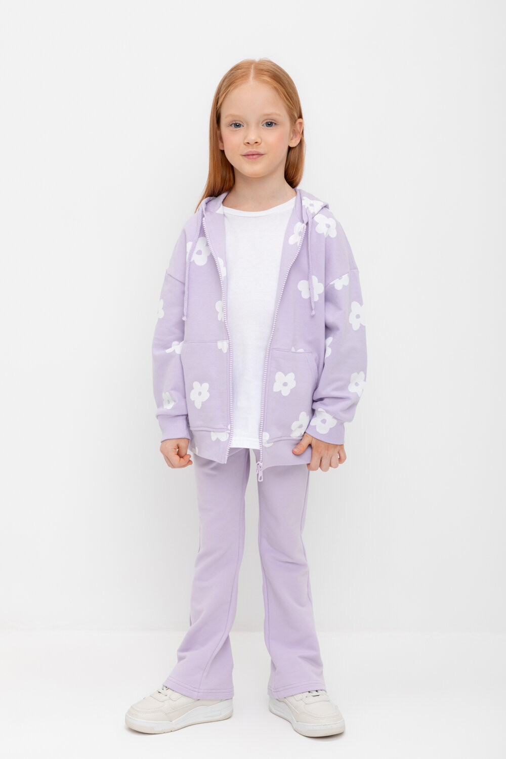 Брюки для девочки из натурального хлопка, Crockid К 400681/пастельно-лиловый р 64/122