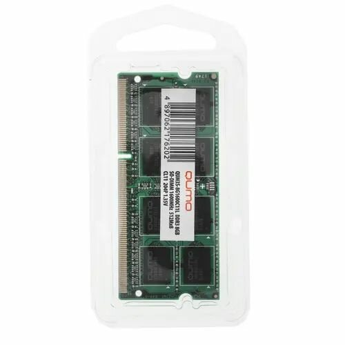 Модуль памяти SODIMM DDR3L 8GB Qumo QUM3S-8G1600C11L PC3L-12800 1600Mhz CL11 1.35V RTL