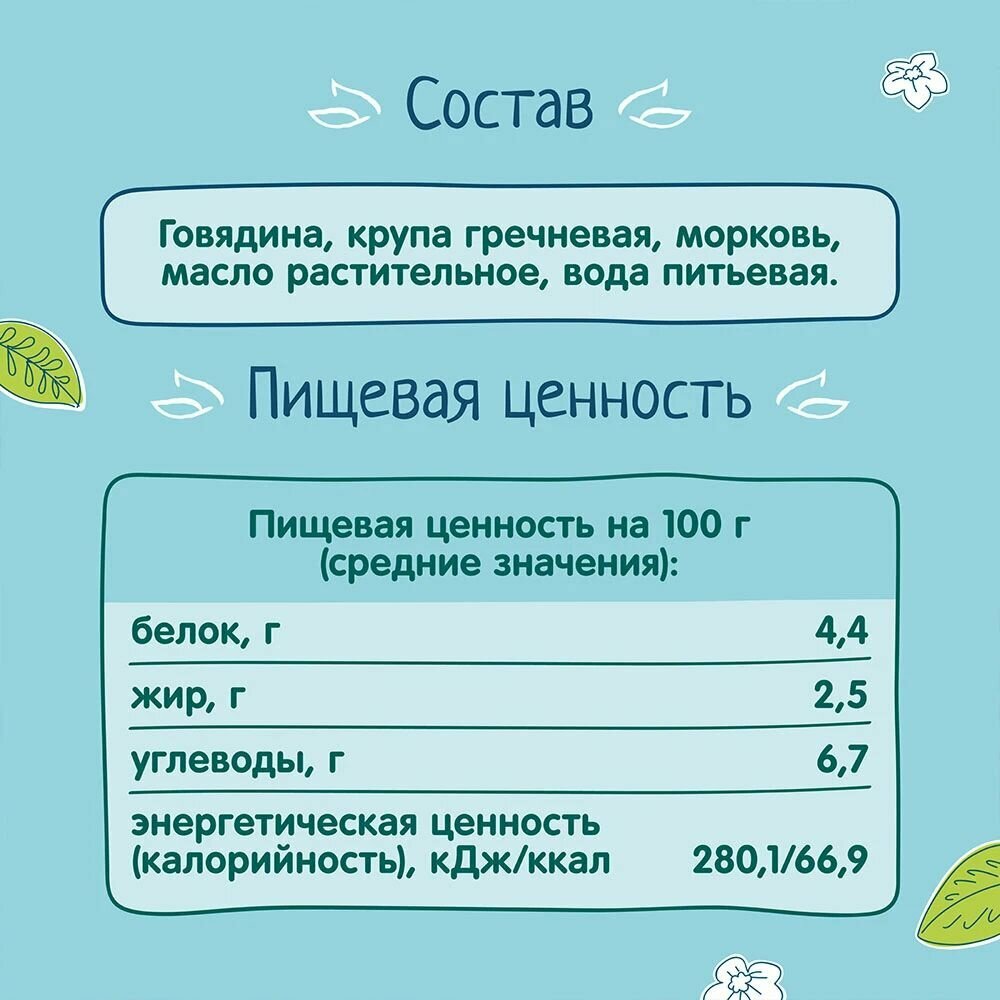 | Состав | говядина / крупа гречневая / морковь / масло растительное / вода питьевая |