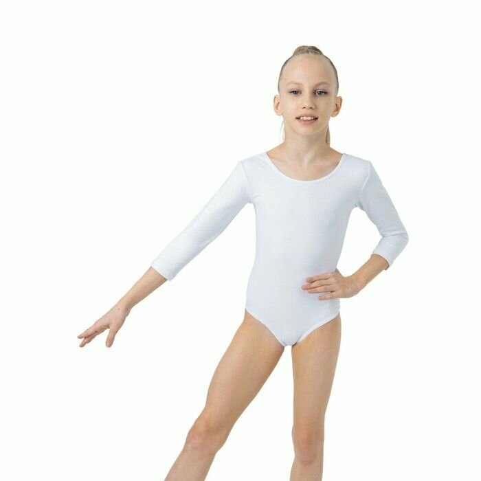Купить Купальник гимнастический, рукав 3/4, р. 32, цвет белый