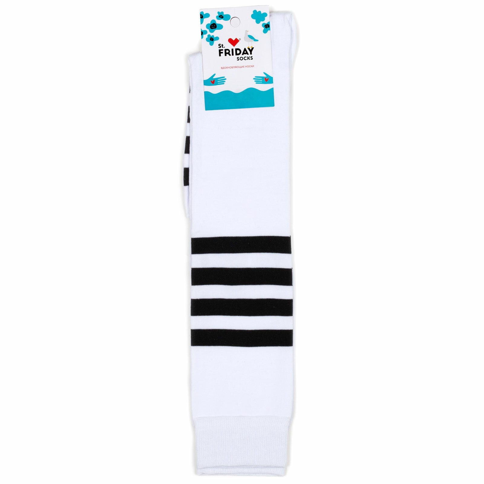 Носки St. Friday Гольфы c полосками- Необычные - Белые, размер 34-37, черный, белый