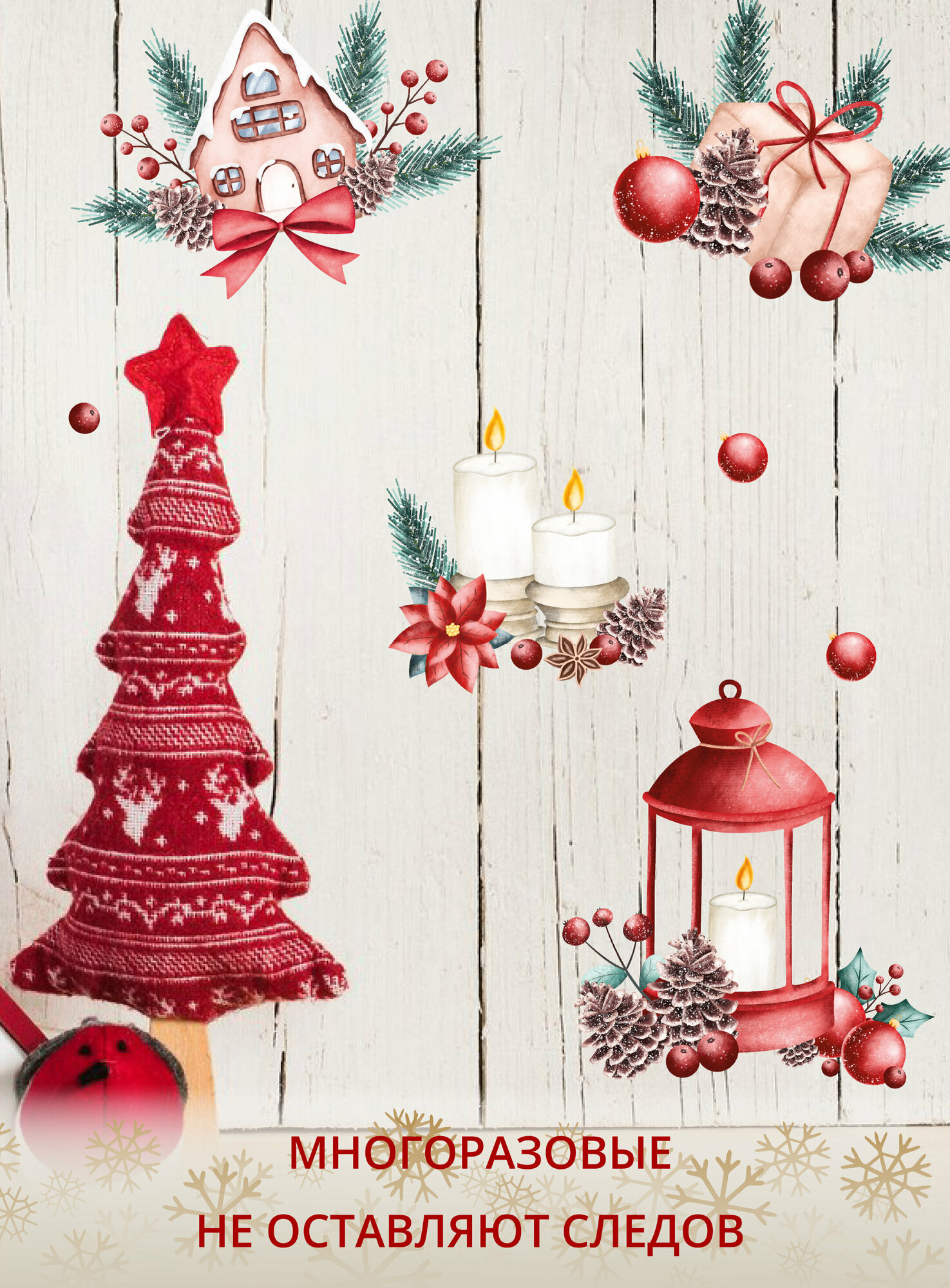 Новогодние наклейки на окно / дверь / окно / зеркало