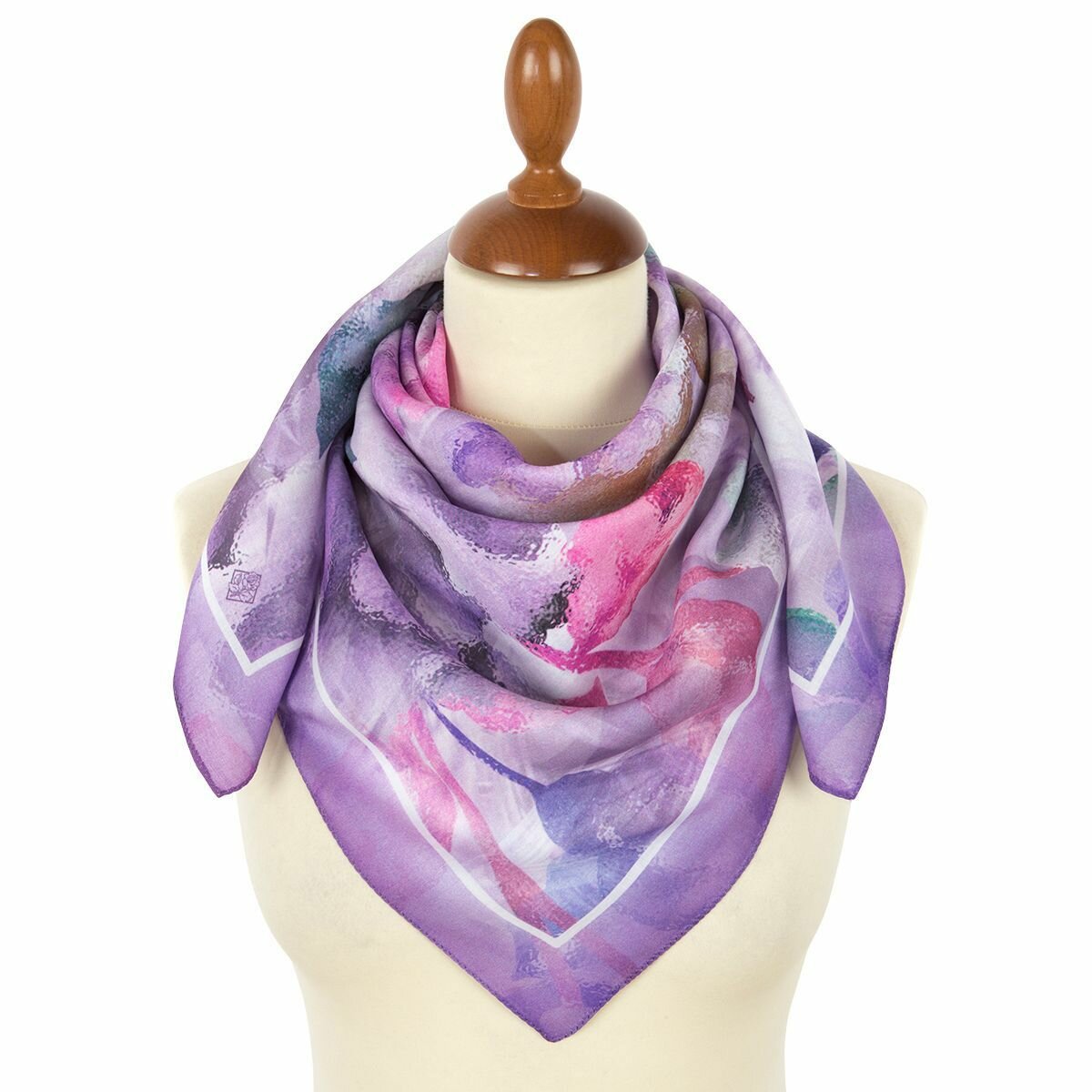 Платок Павловопосадская платочная мануфактура для женщин,80х80 см, белый, синий, фиолетовый