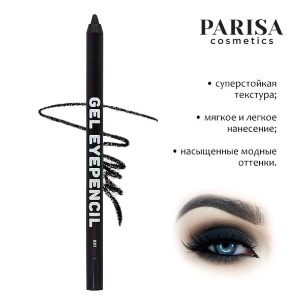 PARISA COSMETICS Карандаш для глаз гелевый Gel Eyepencil, 1 г, 801 Черный интересное: