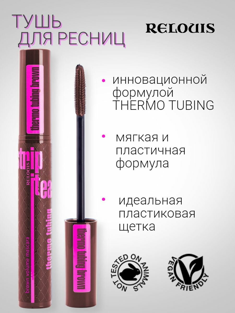RELOUIS Тушь для ресниц коричневая Strip it Easy Thermo Tubing для объема, 9 г
